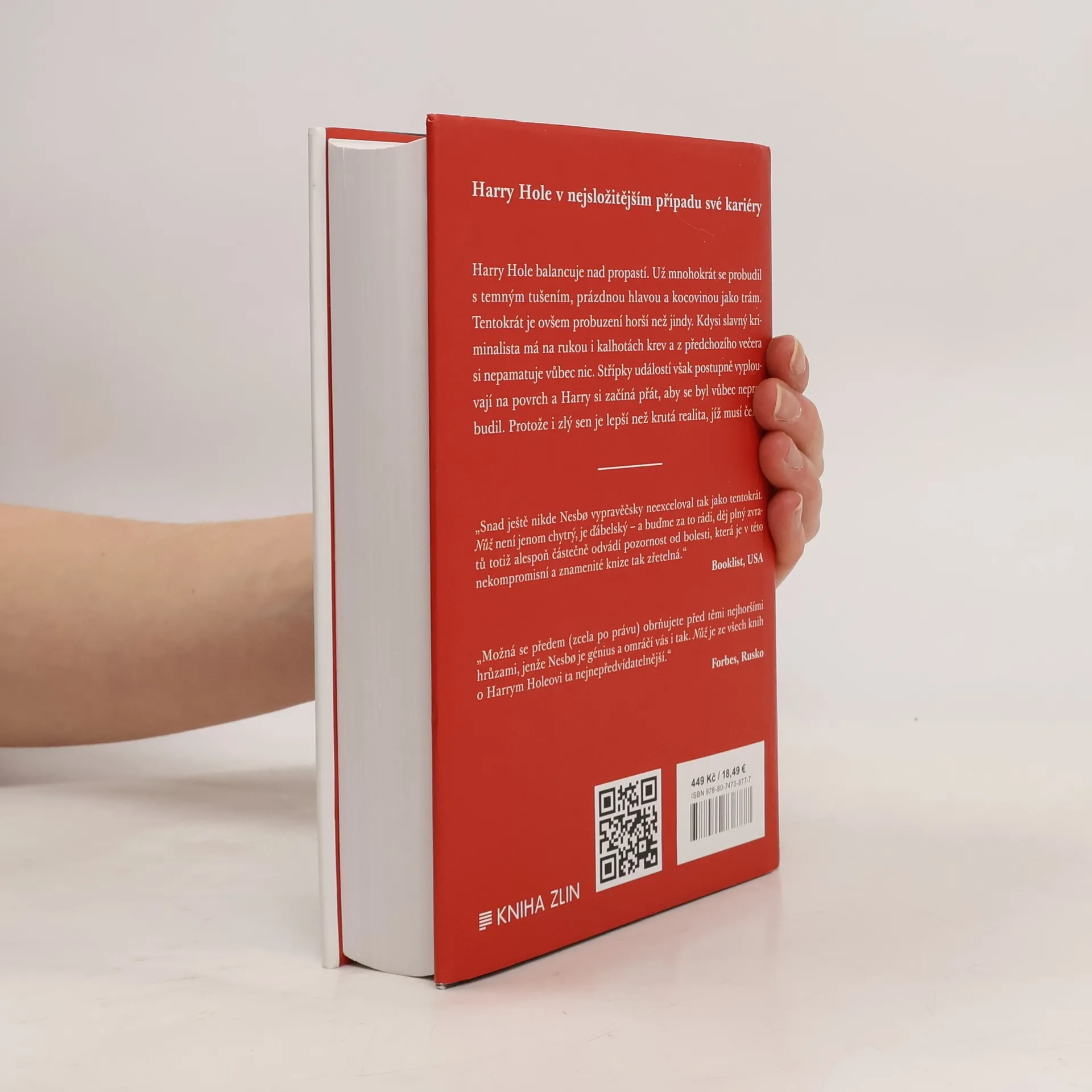 Harry Hole se už mnohokrát probudil s temným tušením, prázdnou hlavou a kocovinou jako trám. Tentokrát je ovšem probuzení ještě horší než jindy. Kdysi slavný kriminalista má na rukou i kalhotách krev a až po chvíli si vybaví, že ztratil všechno. To tam je idylické manželství s Ráchel, ta tam je zajímavá práce vyučujícího na policejní akademii. Jediné, co mu zbylo, je věrný přítel Jim Beam. A také místo v kanceláři vedle Trulse Berntsena, kde jakožto bývalá legenda smí na přímluvu svého šéfa aspoň třídit papíry. Co si však Harry vybavit nedokáže, jsou události včerejšího večera v baru Jealousy. Jednotlivé střípky vyplouvají na povrch jen pomaloučku, skládají se však ve strašlivý obrázek. Harry si začíná přát, aby se byl vůbec neprobudil, protože i zlý sen je lepší než krutá realita, jíž musí čelit. Ve chvíli, kdy si myslí, že už se dostal na samé dno a víc ztratit nemůže, se navíc objeví jeho dávný nepřítel Svein Finne. Harry má dvě možnosti: skoncovat se vším hned, anebo se ještě aspoň dočasně vzchopit.