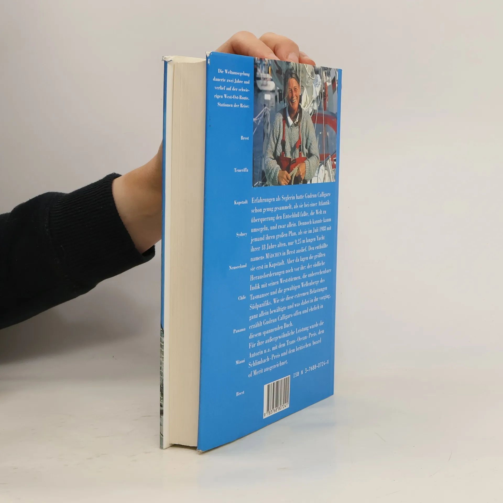 Als die 42-jährige Stuttgarter Vorstandsassistentin mit ihrer damals bereits 18 Jahre alten, 9,25m langen Yacht „Mädchen“ in Brest auslief, ahnte kaum jemand etwas von ihrem abenteuerlichen Plan, die Welt allein zu umsegeln. Den enthüllte sie erst in Kapstadt, als sie sicher war, dass sie es schaffen könnte. Sie wählte nicht die bei den Weltumseglern meist übliche Passatroute, sondern die schwierigere Route der alten Windjammer – von West nach Ost. In der Tasmansee durchlebte sie ihre härteste Bewährungsprobe: Nachdem sie sich tagelang durch brechende, explodierende Wellen geboxt hatte, kenterte ihre Yacht, für Sekunden verlor sie das Bewusstsein. Doch das Schiff überstand. Der Bruch eines Ruderbolzens zwang sie schließlich, statt, wie geplant, ums Kap Hoorn zu segeln, durch den Panamakanal in den Atlantik zurückzulaufen. Nach 338 Seetagen und 31 834 zurückgelegten Seemeilen, mit nur sieben Zwischenstopps, landete sie wieder in Brest. Für ihre außergewöhnliche seglerische Leistung erhielt sie, neben zahlreichen weiteren Ehrungen, den Trans-Ocean-Preis, den Ludwig-Schlimbach-Preis (bedeutendste Auszeichnung der deutschen Ozeansegler) und den in Großbritannien noch bedeutenderen Award of Merit.