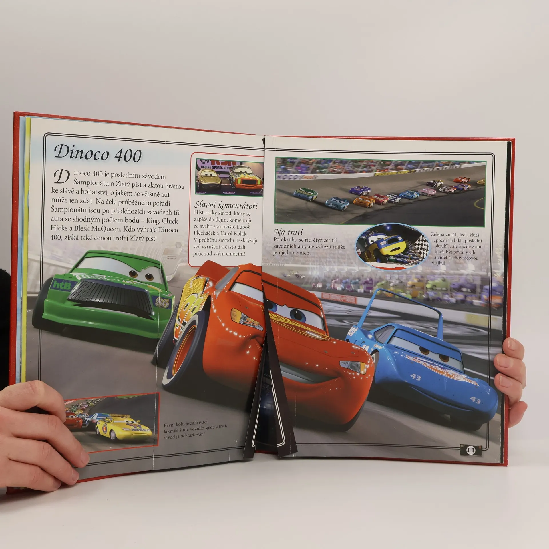 Seznámení s hrdiny příběhu závodního auta Bleska McQueena s celostránkovými ilustracemi.