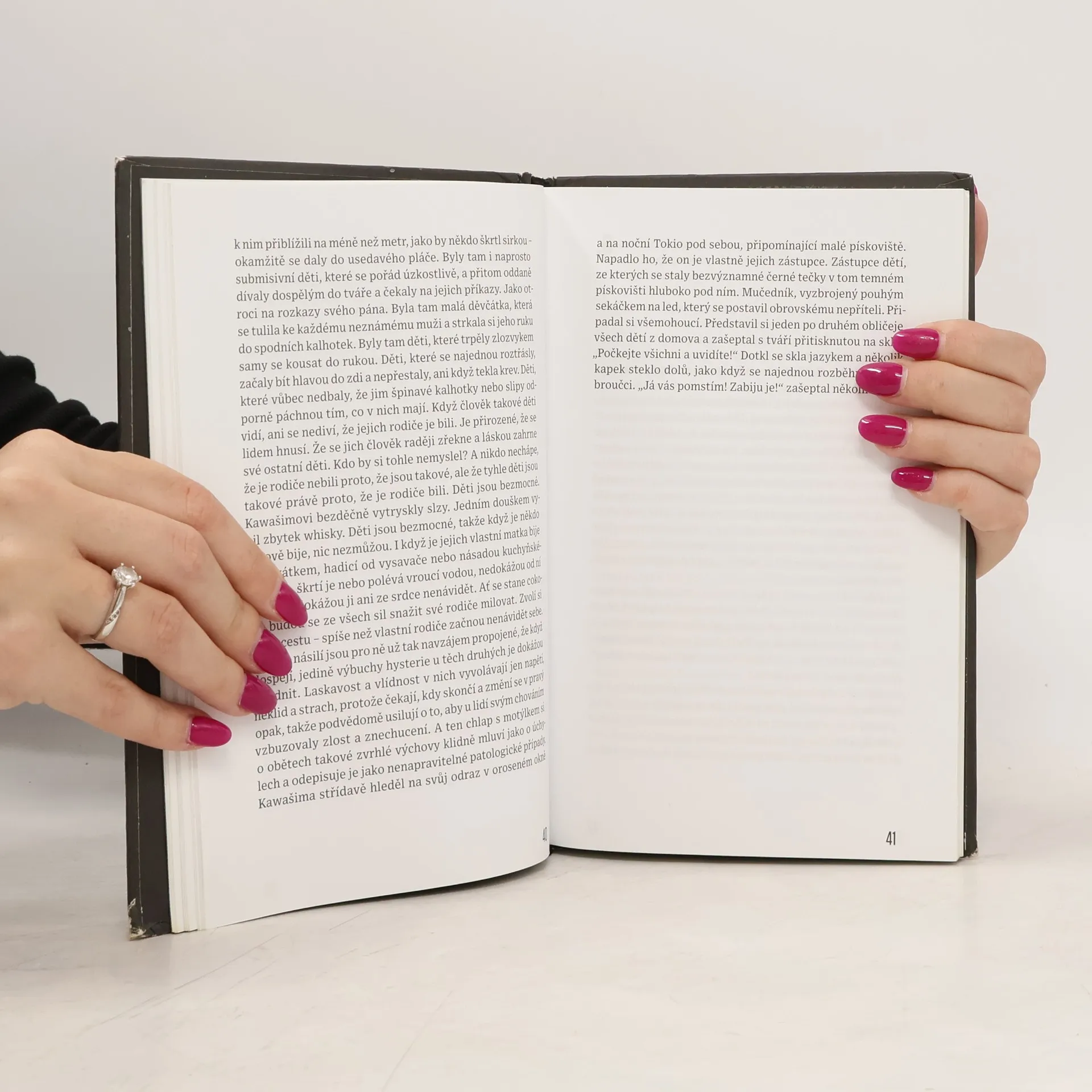 Provokativní bestsellery Rjú Murakamiho ukazují japonskou společnost obnaženou až na samou dřeň, se všemi zápornými jevy tokijského „pekla“. V psychologickém thrilleru Piercing (1994) se hrdina rozhodne zavraždit v hotelovém pokoji prostitutku, aby se zbavil nutkání ubodat svou čtyřměsíční dceru. Netuší však, že zvolená oběť trpí depresemi a hodlá spáchat sebevraždu. Mezi oběma schizofreniky začíná bizarní hra na kočku a na myš, aniž je zřejmé, kdo je vlastně kočka a kdo myš. Kniha se pohybuje na samé hraně mezi tragédií a černou komedií, nechybí v ní napětí, sex, násilí ani módní nihilismus.