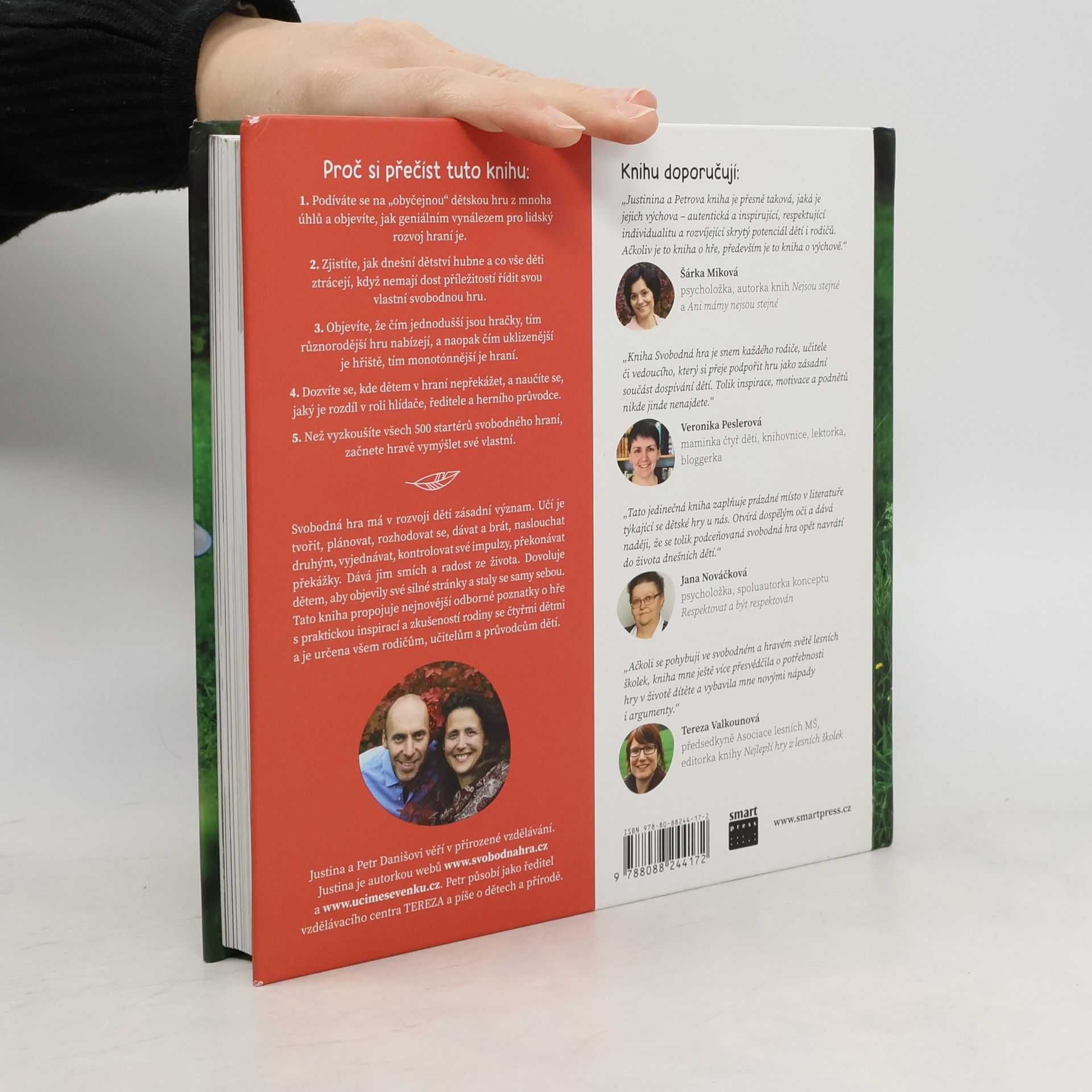 Jak nechat vyrůst radostné, odolné a samostatné děti. Kniha propojuje nejnovější odborné poznatky o hře s praktickou inspirací a zkušeností rodiny se čtyřmi dětmi a je určena všem rodičům, učitelům a průvodcům dětí. Svobodná hra má v rozvoji dětí zásadní význam. Učí je tvořit, plánovat, rozhodovat se, dávat a brát, naslouchat druhým, vyjednávat, kontrolovat své impulzy, překonávat překážky. Dává jim smích a radost ze života. Dovoluje dětem, aby objevily své silné stránky a staly se samy sebou. Kniha obsahuje více než 500 startérů hraní. Proč si přečíst tuto knihu: 1. Podíváte se na „obyčejnou“ dětskou hru z mnoha úhlů a objevíte, jak geniálním vynálezem pro lidský rozvoj hraní je. 2. Zjistíte, jak dnešní dětství hubne a co vše děti ztrácejí, když nemají dost příležitostí řídit svou vlastní svobodnou hru. 3. Objevíte, že čím jednodušší jsou hračky, tím různorodější hru nabízejí, a naopak čím uklizenější je hřiště, tím monotónnější je hraní. 4. Dozvíte se, kde dětem v hraní nepřekážet, a naučíte se, jaký je rozdíl v roli hlídače, ředitele a herního průvodce. 5. Než vyzkoušíte všech 500 startérů svobodného hraní, začnete hravě vymýšlet své vlastní. Justina a Petr Danišovi věří v přirozené vzdělávání. Justina je autorkou webů ucimesevenku.cz a svobodnahra.cz. Petr působí jako ředitel vzdělávacího centra TEREZA a píše o dětech a přírodě.