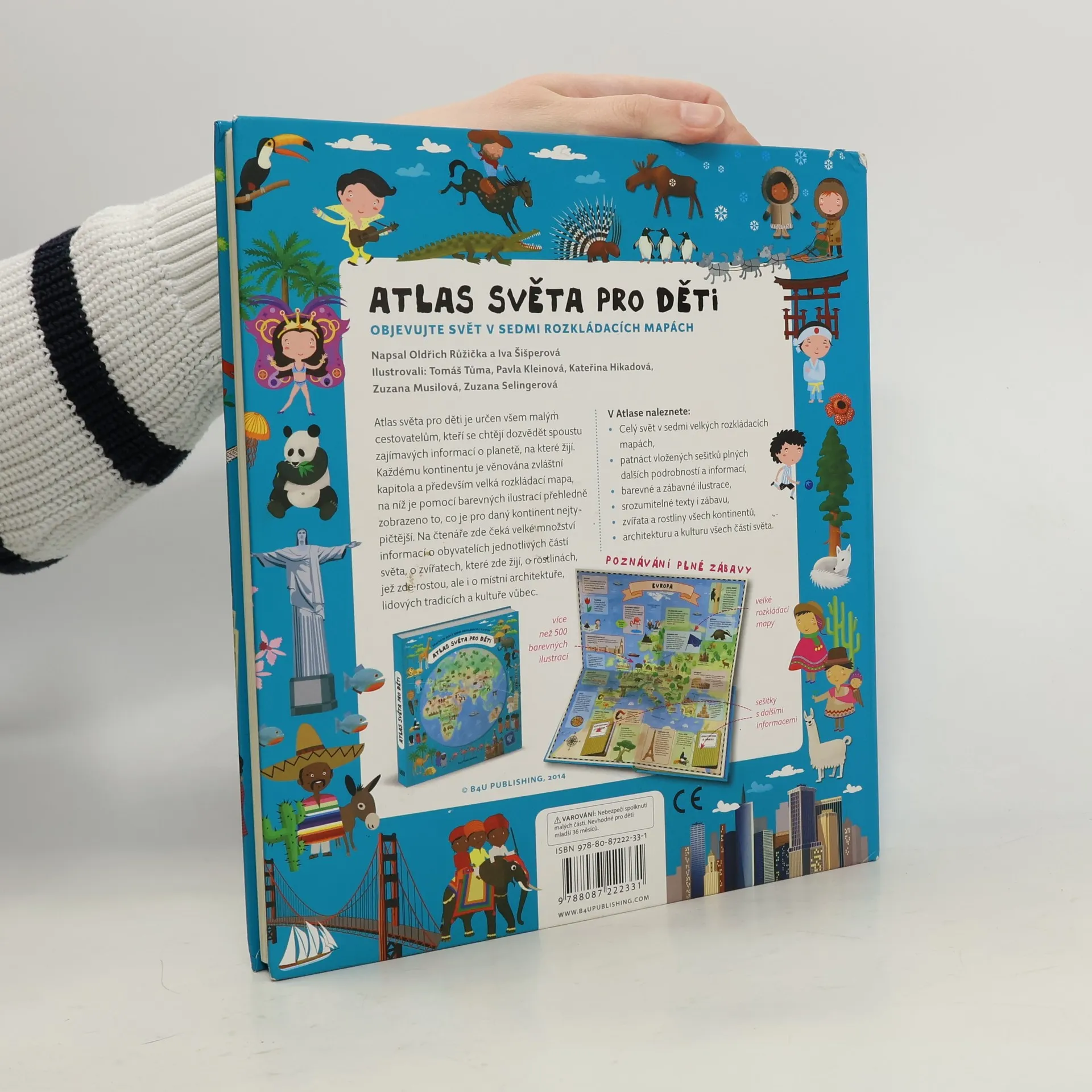 Atlas světa pro děti je určen všem malým cestovatelům, kteří se chtějí dozvědět spoustu zajímavých informací o planetě, na které žijí. Každému kontinentu je věnována zvláštní kapitola a především velká rozkládací mapa, na níž je pomoci barevných ilustrací přehledně zobrazeno to, co je pro daný kontinent nejtypičtější. Na čtenáře zde čeká velké množství informací o obyvatelích jednotlivých částí světa, o zvířatech, které zde žijí, o rostlinách, jež zde rostou, ale i o místní architektuře, lidových tradicích a kultuře vůbec. V Atlase naleznete celý svět v sedmi velkých rozkládacích mapách, patnáct vložených sešitků plných dalších podrobností a informací, barevné a zábavné ilustrace, srozumitelné texty i zábavu, zvířata a rostliny všech kontinentů, architekturu a kulturu všech částí světa.