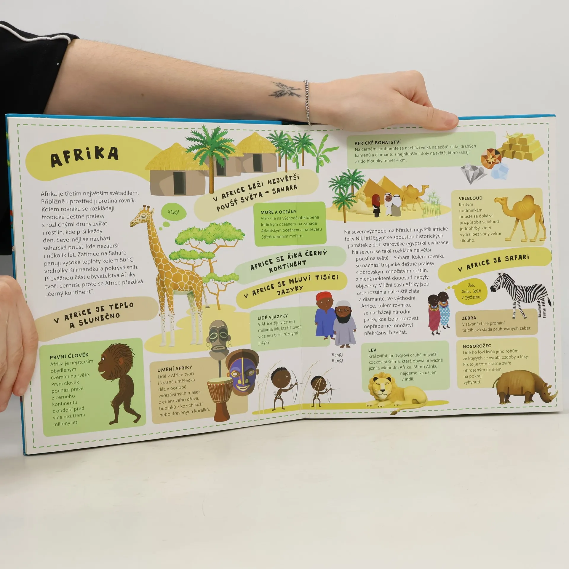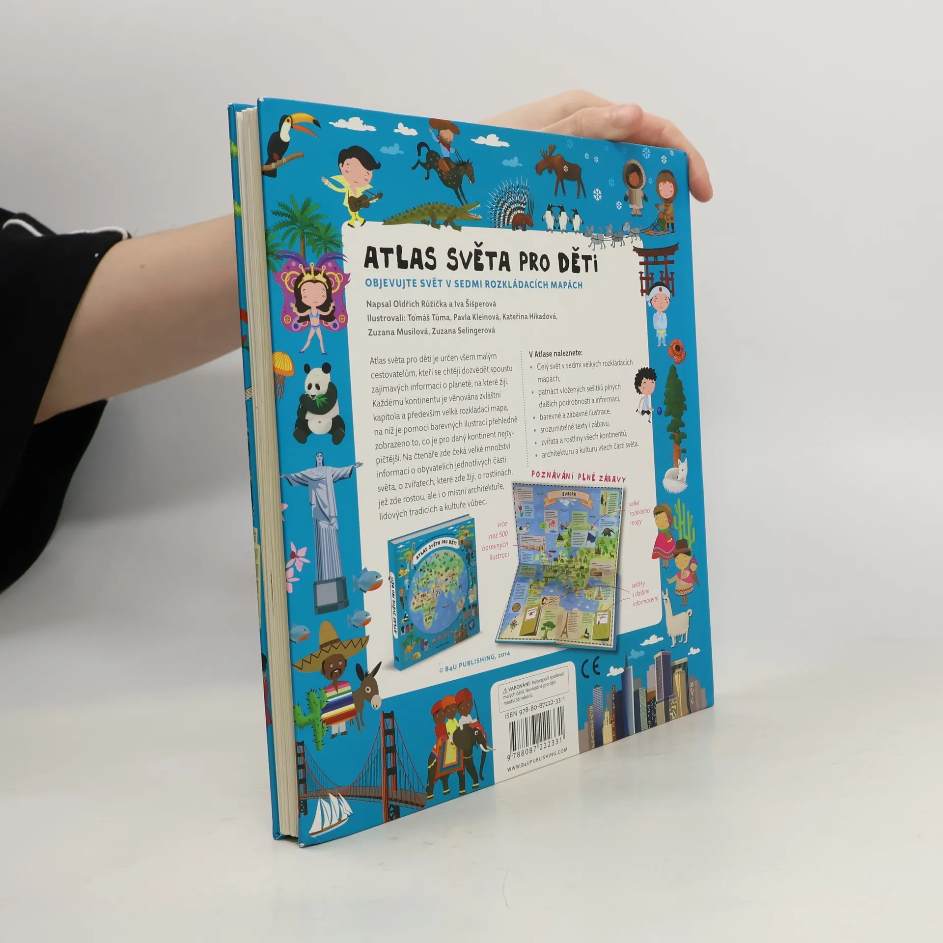 Atlas světa pro děti je určen všem malým cestovatelům, kteří se chtějí dozvědět spoustu zajímavých informací o planetě, na které žijí. Každému kontinentu je věnována zvláštní kapitola a především velká rozkládací mapa, na níž je pomoci barevných ilustrací přehledně zobrazeno to, co je pro daný kontinent nejtypičtější. Na čtenáře zde čeká velké množství informací o obyvatelích jednotlivých částí světa, o zvířatech, které zde žijí, o rostlinách, jež zde rostou, ale i o místní architektuře, lidových tradicích a kultuře vůbec. V Atlase naleznete celý svět v sedmi velkých rozkládacích mapách, patnáct vložených sešitků plných dalších podrobností a informací, barevné a zábavné ilustrace, srozumitelné texty i zábavu, zvířata a rostliny všech kontinentů, architekturu a kulturu všech částí světa.