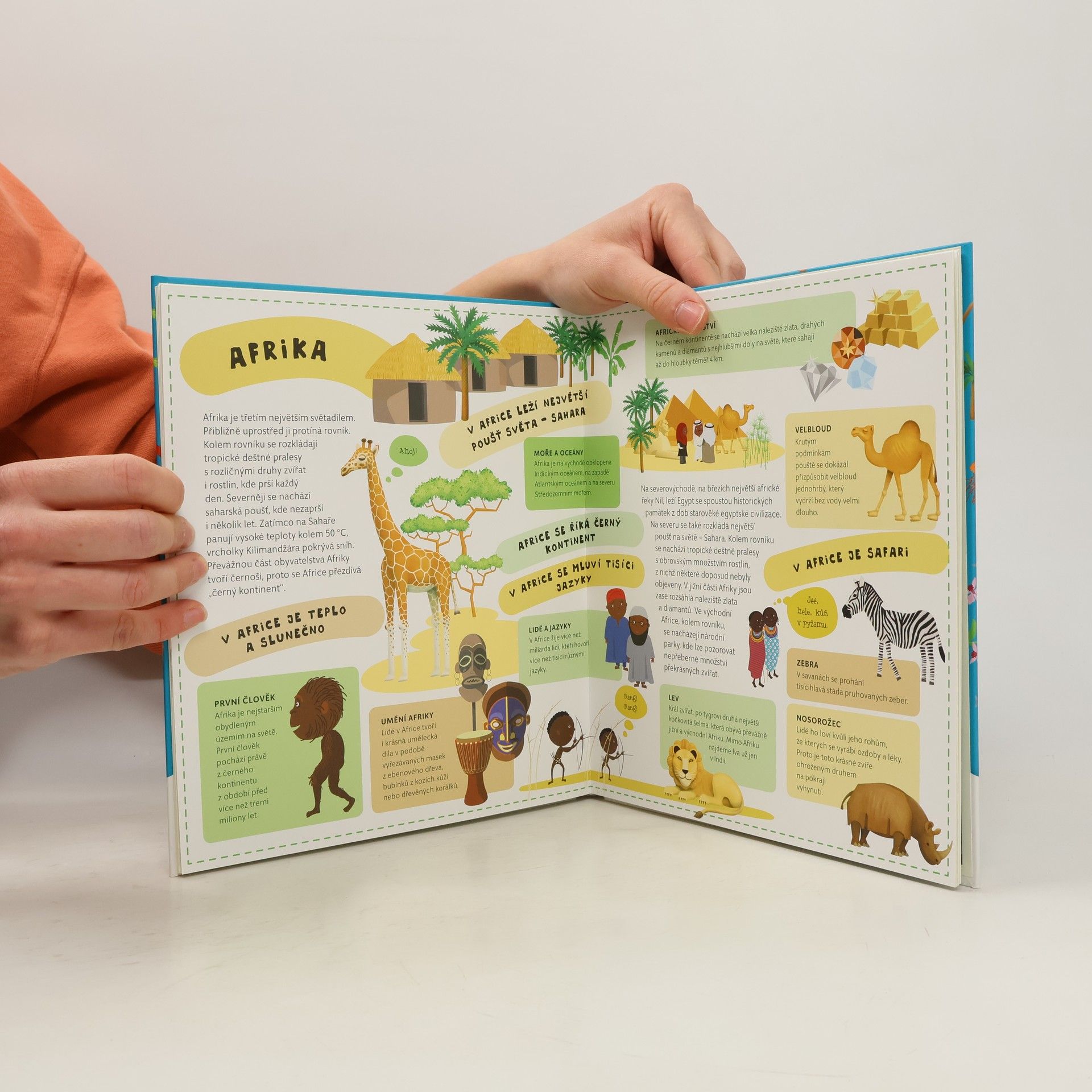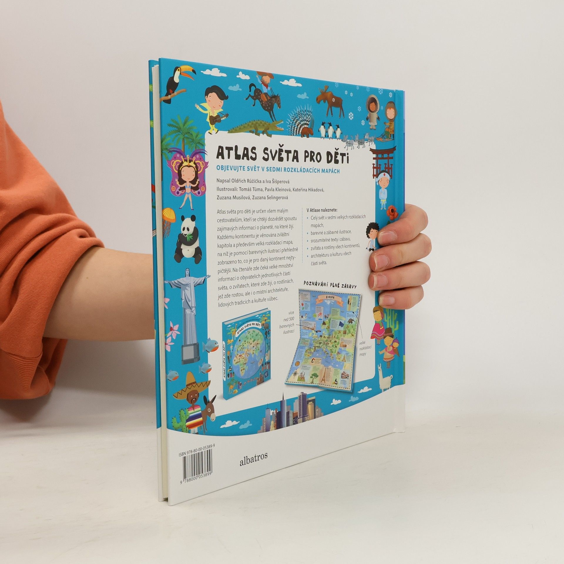 Atlas světa pro děti je určen všem malým cestovatelům, kteří se chtějí dozvědět spoustu zajímavých informací o planetě, na které žijí. Každému kontinentu je věnována zvláštní kapitola a především velká rozkládací mapa, na níž je pomoci barevných ilustrací přehledně zobrazeno to, co je pro daný kontinent nejtypičtější. Na čtenáře zde čeká velké množství informací o obyvatelích jednotlivých částí světa, o zvířatech, které zde žijí, o rostlinách, jež zde rostou, ale i o místní architektuře, lidových tradicích a kultuře vůbec. V Atlase naleznete celý svět v sedmi velkých rozkládacích mapách, patnáct vložených sešitků plných dalších podrobností a informací, barevné a zábavné ilustrace, srozumitelné texty i zábavu, zvířata a rostliny všech kontinentů, architekturu a kulturu všech částí světa.