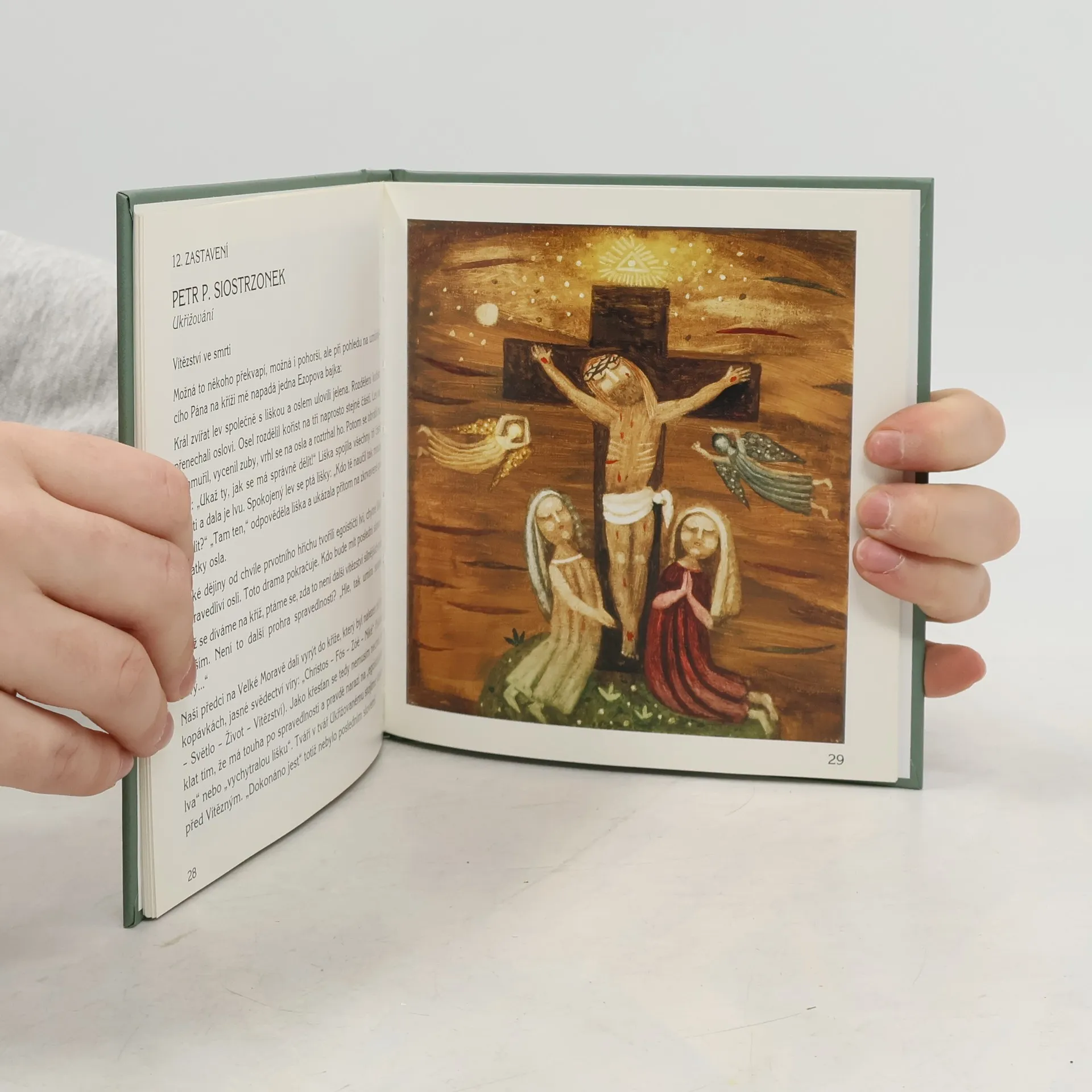 Malířka Renata Štolbová namalovala pro kapli sv. Václava v Úlisné u Českých Budějovic 14 zastavení křížové cesty. Pro knižní vydání pak oslovila různé osobnosti z řad teologů, filozofů, literátů či duchovních (Karel Vrána, Mireia Ryšková, Oto Mádr, Tomáš Špidlík, Marie R. Křížková aj.), aby k obrazům napsali literární doprovod. Malířka navíc zvolila občas trochu jiné výjevy z Ježíšovy křížové cesty, než jaké tradičně známe.