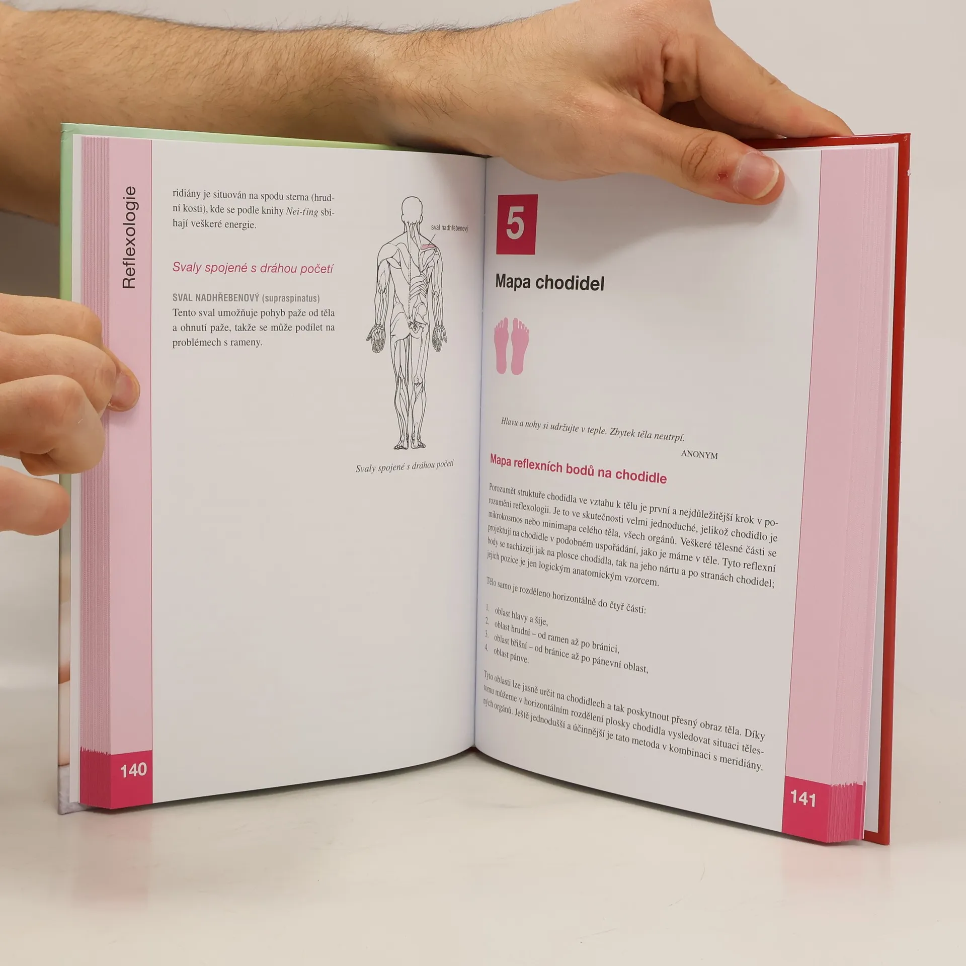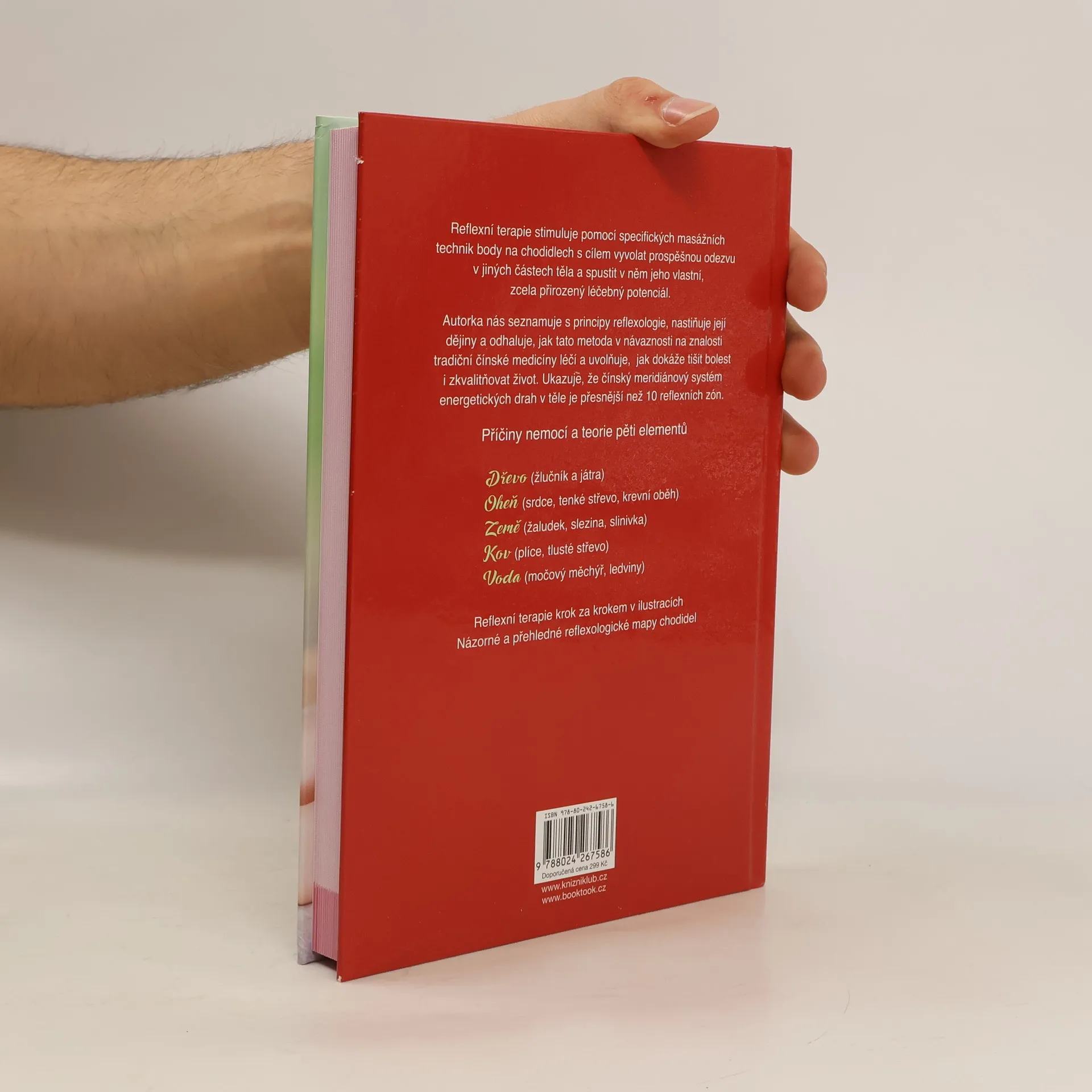 Reflexní terapie krok za krokem v ilustracích, názorné a přehledné reflexologické mapy chodidel. Reflexní terapie stimuluje pomocí specifických masážních technik body na chodidlech s cílem vyvolat prospěšnou odezvu v jiných částech těla a spustit v něm jeho vlastní, zcela přirozený léčebný potenciál. Autorka nás seznamuje s principy reflexologie, nastiňuje její dějiny a odhaluje, jak tato metoda v návaznosti na znalost tradiční čínské medicíny léčí a uvolňuje, jak dokáže tišit bolest i zkvalitňovat život. Ukazuje, že čínský meridiánový systém energetických drah v těle je přesnější než 10 reflexních zón.