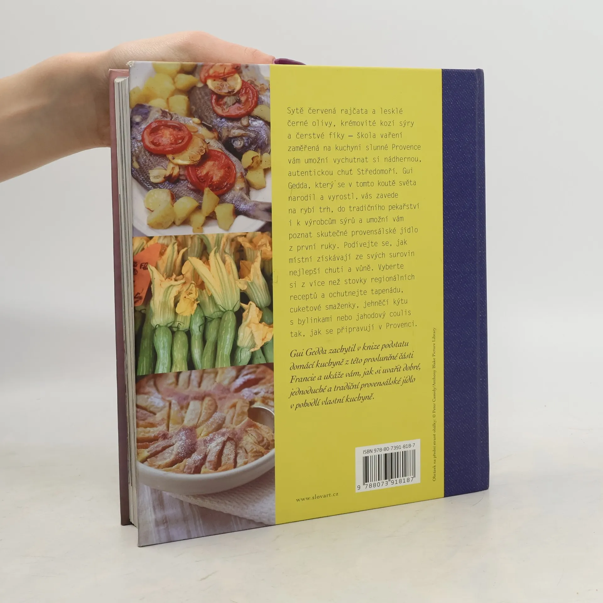 Tajemství surovin a receptů jižní Francie. Jen málokdo odolá kouzlu slunné Provence a jídlům, která jsou příkladem nejlepší venkovské kuchyně. Kniha koncipovaná jako týdenní škola vaření nám umožní vychutnat si nádhernou autentickou chuť Středomoří. Autor se v tomto koutě světa narodil a vyrostl zde, je považován za guru provensálského stravování. Zavede nás na rybí trh, do tradičního pekařství, k výrobcům sýrů, dozvíme se od něj, jak místní získávají ze surovin nejlepší chutě a vůně, umožní nám prostě poznat provensálské jídlo z první ruky… Můžeme si vybrat z více než stovky receptů a ochutnat třeba tapenádu neboli kaparovou pastu, cuketové smaženky, jehněčí kýtu s bylinkami nebo jahodový coulis. Jak uvařit dobré a tradiční provensálské jídlo v pohodlí vlastní kuchyně.