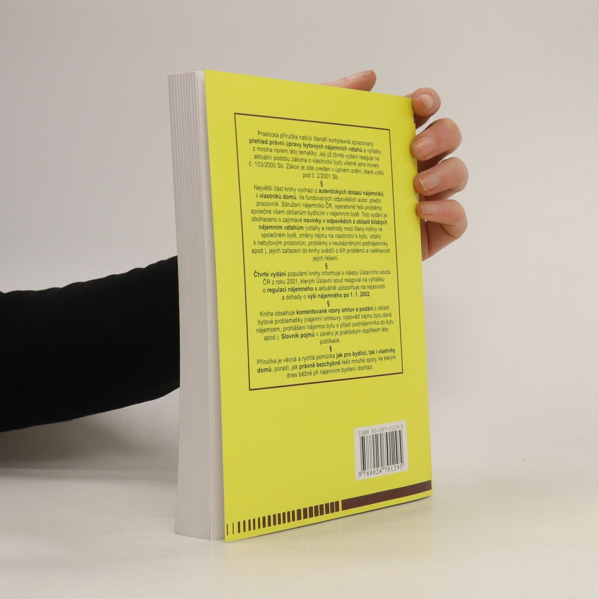 Kniha je praktickou příručkou a nabízí komplexní přehled aktuální právní úpravy v oblasti nájemního bydlení. Jako jediná na trhu obsahuje komplexní a ucelený přehled informací pro nájemce, pronajímatele, vlastníky nemovitostí, obce, bytová družstva a jejich členy a další se zájmem o bytovou problematiku. Obsahuje nečastěji pokládané dotazy nájemců a vlastníků nemovitostí s vypracovanými odpověďmi, plná znění či vybraná ustanovení plantných právních předpisů s komentářem, významná rozhodnutí soudů v dané oblasti s jejich právními důsledky, vzory smluv a podání. Přehledně vysvětluje roli státu v nájemních vztazích, zejména příspěvek na bydlení a doplatek na bydlení a možnosti a způsoby jeho čerpání.
