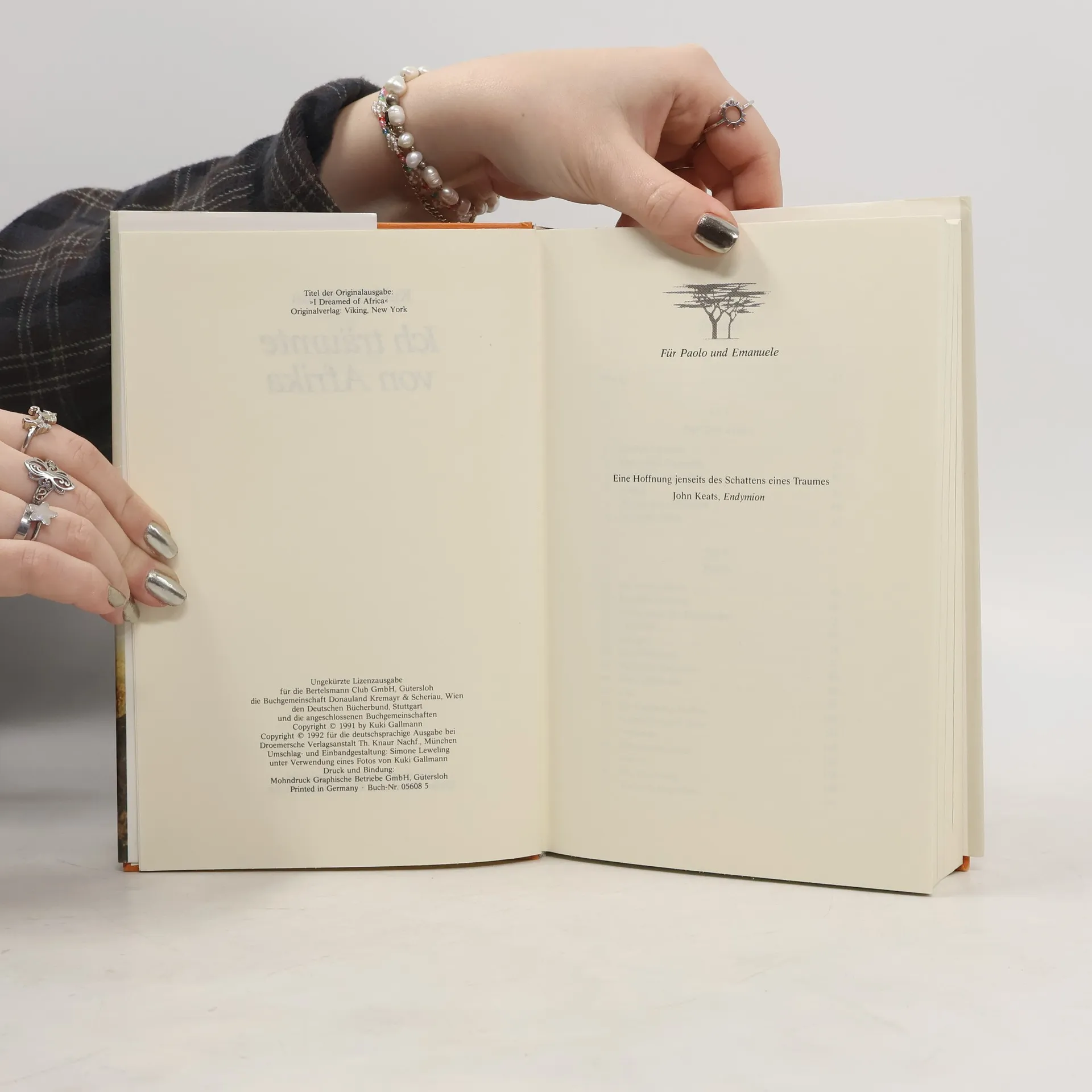Die gebürtige Italienerin Kuki Gallmann lebt auf einer Farm in Kenia. Zwei Schicksalsschläge nehmen ihr zuerst den Mann, dann den Sohn. Aber die Liebe zur Wahlheimat Afrika und ihren Menschen geben ihr ungeahnte Kräfte. Sie wandelt die Farm in eine Stiftung um, in ein Tier- und Pflanzenreservat, richtet einen Handwerkshof für Frauen ein und initiiert Ausbildungsprogramme für deren Kinder. In diesem Buch erzählt sie ihre anrührende Geschichte.