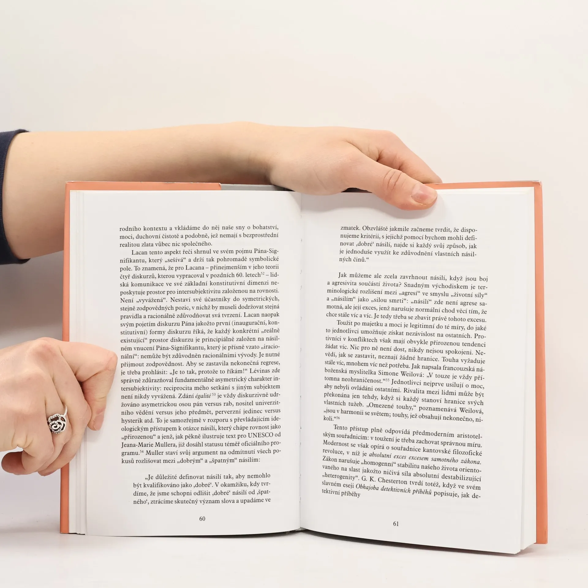 V této knize se slovinský filozof a psychoanalytik Slavoj Žižek zabývá komplexním rozborem násilí ve všech jeho aspektech a hledá jeho příčiny. Zkoumá podstatu násilí, které může mít formu individuálních zločinů, teroristických útoků, fundamentalismu, či válečných konfliktů. Klade si otázku, zda naše fascinace těmito viditelnými projevy násilí a naše hysterické reakce na ně nebrání tomu, abychom viděli jeho skutečnou podstatu. Žižek se zamýšlí nad tím, zda oslavování nenásilí a tolerance není paradoxně tím, co násilí udržuje při životě. Podle něj je důležité odstoupit od přímého pohledu na „subjektivní“ násilí, jež je snadno identifikovatelné a vnímáno jako narušení „normálního“ stavu. Místo toho bychom měli rozpoznat širší kontext, který tyto jevy vyvolává. Žižekova teorie se opírá o triádu násilí, kde „subjektivní“ násilí představuje pouze viditelnou část. Dále rozlišuje dvě formy „objektivního“ násilí: „symbolické“ násilí, které se projevuje v jazyce, a „systémové“ násilí, jež má katastrofické důsledky pro fungování našich ekonomických a politických systémů.
