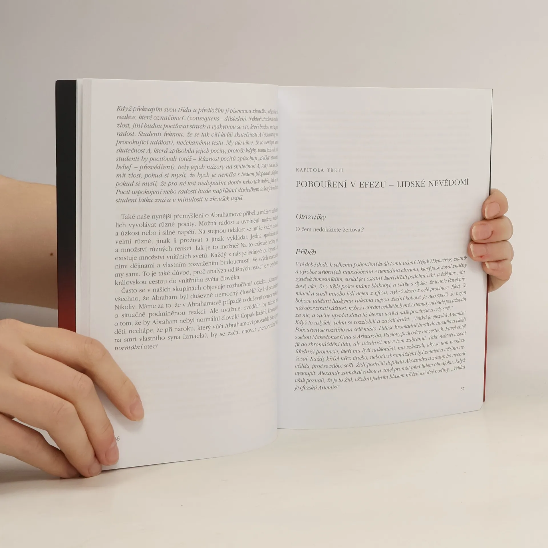 Devatenáct biblickych příběhů popisuje duchovní, existenciální a psychologické aspekty, které vyvstávaly při práci s těmito texty v hagioterapeutických skupinách, jež autoři prožívali spolu se svými klienty v Psychiatrické nemocnici v Praze – Bohnicích. Hagioterapie je formou skupinové psychoterapie existenciálního zaměření, která – i když většinu účastníků tvoří nevěřící lidé – vychází z terapeutické inspirace biblickým textem. Zobecněná zkušenost lidí, kteří společně nad Biblí hledali uzdravení svého života, může být praktickou inspirací pro všechny, kteří hledají spojitost mezi svým prožíváním, psychologickou teorií a křesťanskou kulturní tradicí. Knihou Nahá žena na střeše chtějí autoři z těžko srozumitelné směsice slov, veršů, mýtů, rad, příkazů a zákazů, které obsahuje Bible, přiblížit řadu prvků dramatických, někdy komických, ale vždy terapeutických. Všechny mohou inspirovat k přemyšlení ... nejen lidi biblické, ale i lidi nebiblické ba i antibiblické.