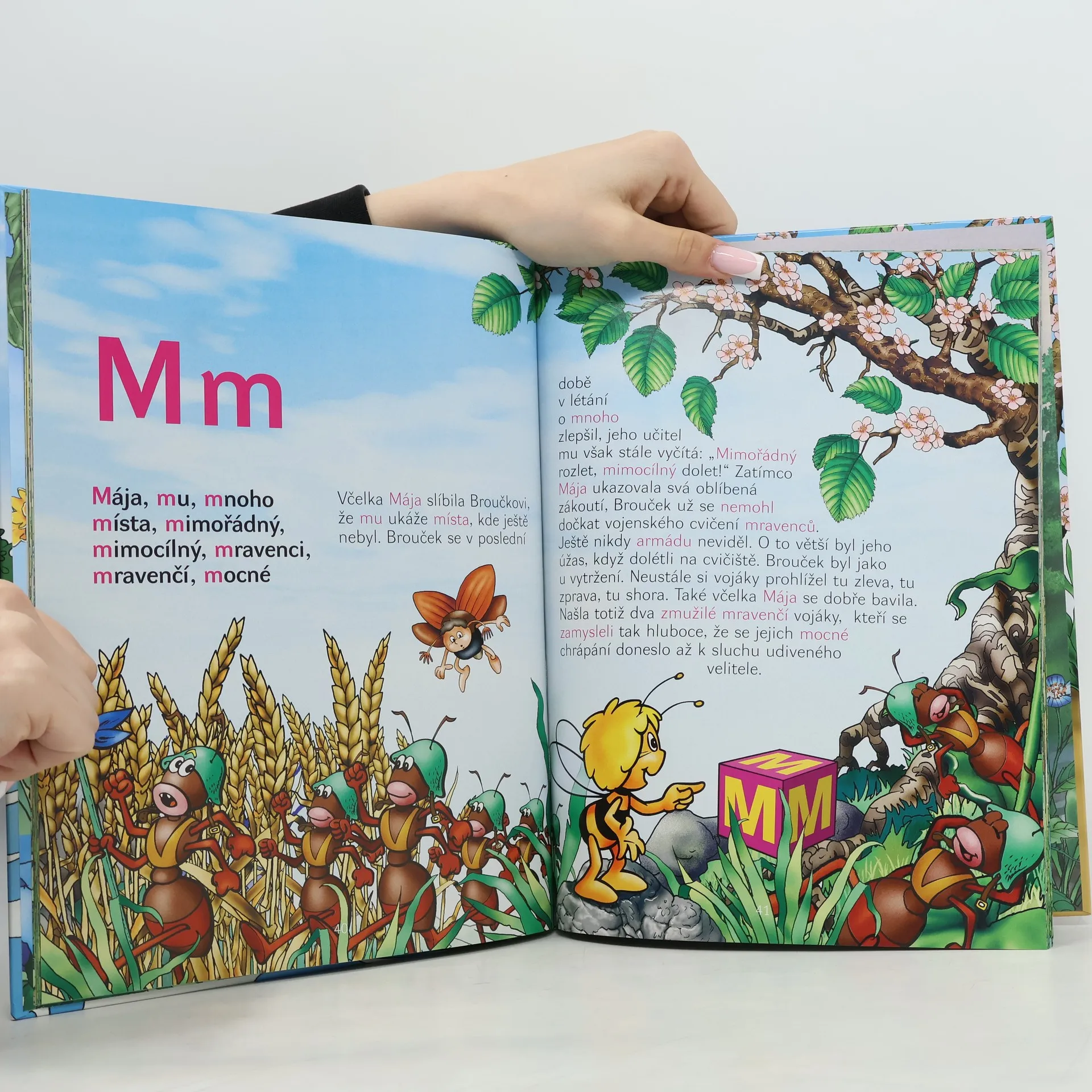 Kniha uvede děti do světa včelky Máji a jejích kamarádů. Obsahuje 38 poutavých příběhů,které doprovázejí úžasné celostránkové obrázky.A navíc je každý příběh věnován jednomu písmenu abecedy.Slova,jež tato písmenka obsahují jsou uvedena v přehledu před vyprávěním.Kniha je tedy nejen zábavná,ale i poučná a provede děti českou abecedou.
