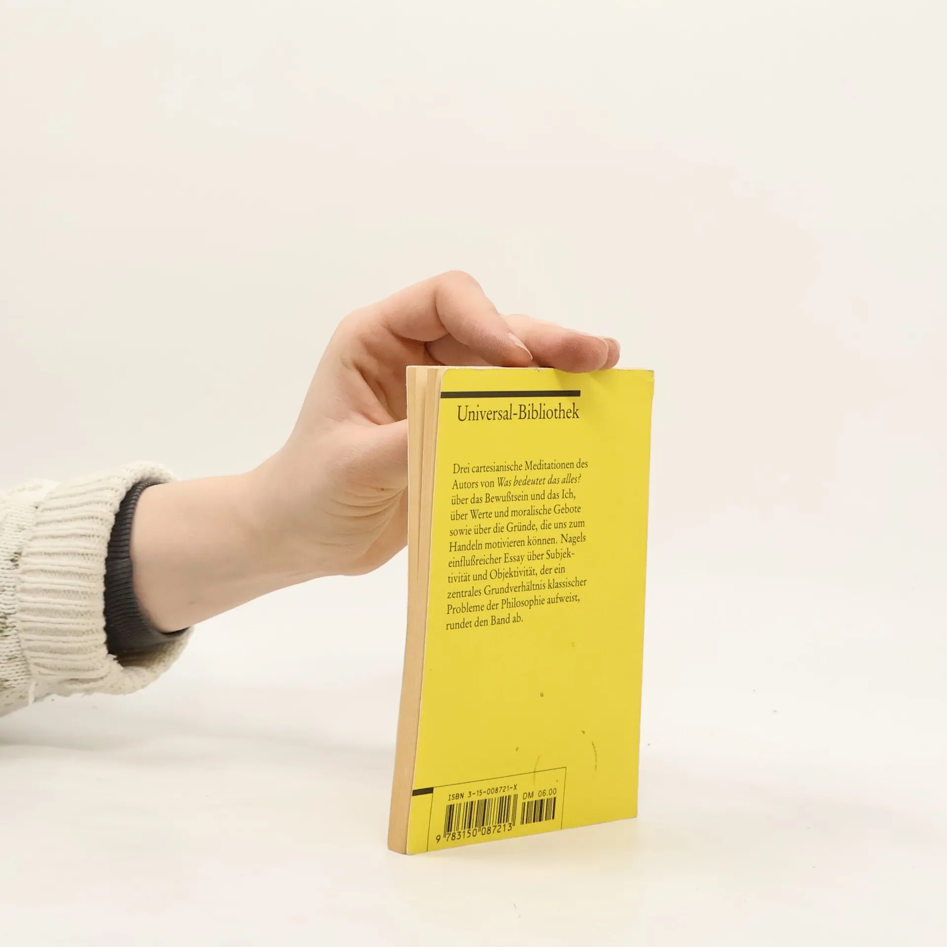 Drei cartesianische Meditationen des Autors von »Was bedeutet das alles?« über das Bewußtsein und das Ich, über Werte und moralische Gebote sowie über die Gründe, die uns zum Handeln motivieren können. Nagels einflußreicher Essay über Subjektivität und Objektivität, der ein zentrales Grundverhältnis klassischer Probleme der Philosophie aufweist, rundet den Band ab.