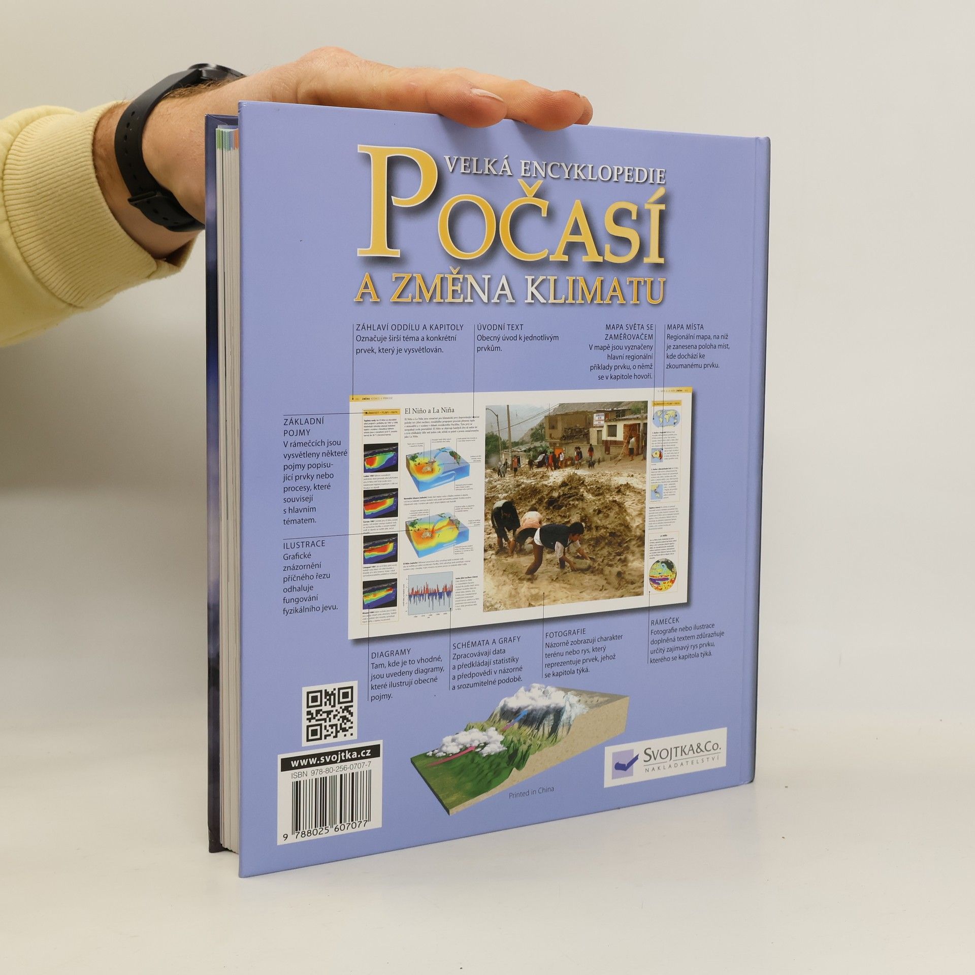 S počasím se stále něco děje. A to je pravděpodobně důvod, proč se jím tolik zabýváme. Srozumitelné texty v této knize, které byly napsány mezinárodním týmem odborníku, barevné fotografie, podrobné ilustrace, mapy, grafy a diagramy vám způsobem, jenž zaujme i poučí, odhalí procesy a mechanismy, které ovládají a jimiž se řídí počasí. Kniha je rozdělena do šesti oddílu, obsahuje výsledky nejmodernějších vědeckých výzkumu od úrovně molekulární až po planetární. Podrobně je probrána zemská atmosféra a její globální systémy, extrémní povětrnostní jevy, meteorologie a klimatické pásy. V posledním oddílu jsou uvedeny důkazy o změně klimatu, nastíněny pravděpodobné závěry a vysvětleny způsoby, jimiž mohou vlády, soukromé společnosti i jednotlivci přizpůsobit své zavedené zvyklosti, aby zmírnili stav, jemuž dnes čelí celé lidstvo.