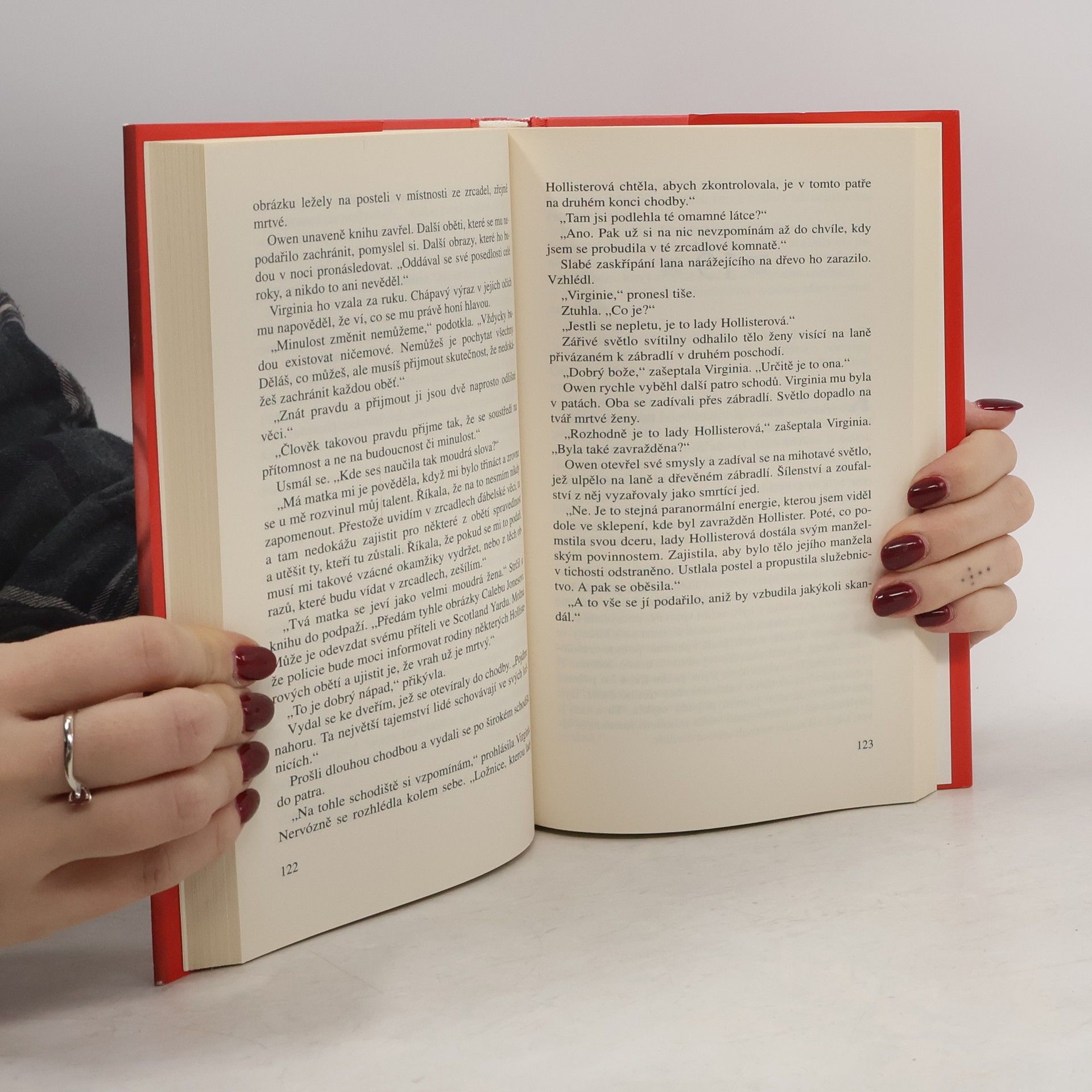 Virginia Deanová se o půlnoci probouzí vedle mrtvého těla. Zakrvácený nůž v ruce a žádná vzpomínka na to, co se mohlo přihodit. Temná energie vyzařující ze zrcadel obklopujících místnost přemáhá její smysly. Avšak přichází pomoc, neznámý muž, na nějž již nezapomene. Owena Sweetwatera, který zdědil rodinný talent k odhalování psychických zrůd pronásledujících londýnské ženy a děti, sem přivedlo vyšetřování vraždy právě včas. Ačkoli členové Společnosti arkány považují Virginii za iluzionistku a šarlatánku, Owen má jiný názor. Virginiiny schopnosti jsou skutečné a on je nutně potřebuje k řešení svého případu.