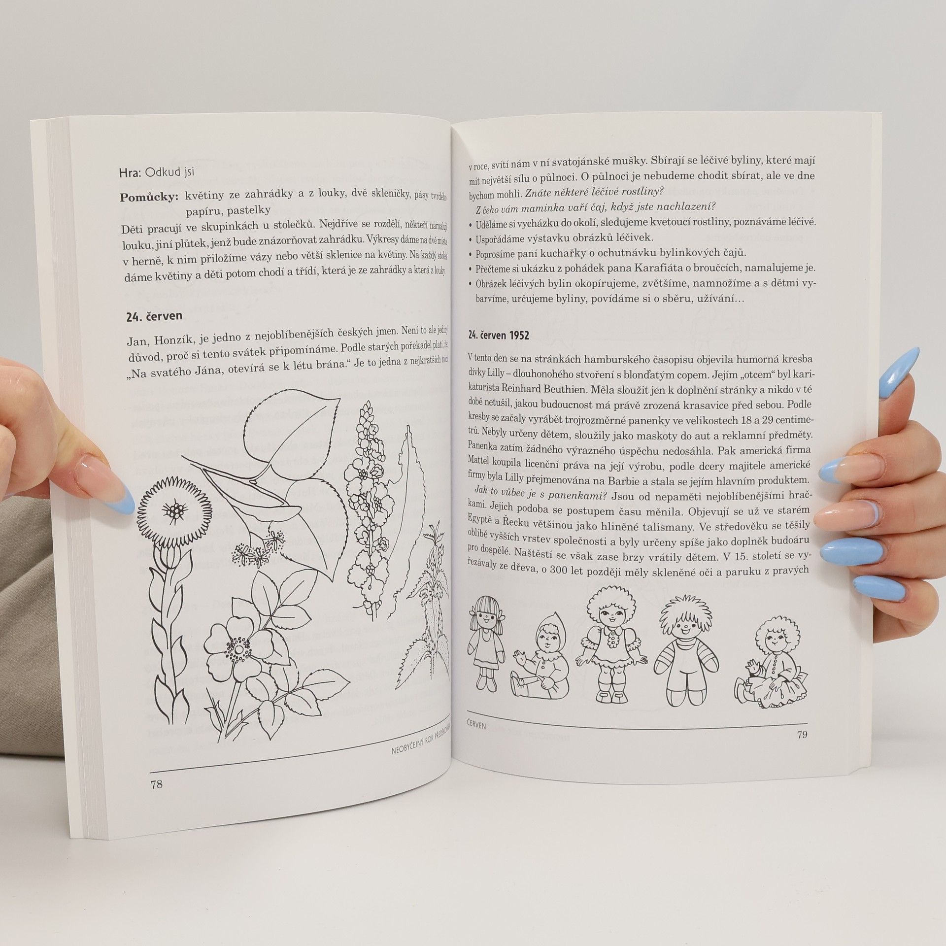 Hry pro předškolní děti s kalendáriem významných událostí. Knížku tvoří soubor her a aktivit inspirovaných dny, které připomínají významná výročí spjatá především s dětským světem. Můžeme tak s dětmi oslavit hrou den prvního úspěšného letu vrtulníkem, den ptactva, vody nebo zdravého spánku, den bez aut, den stromů, den výživy, den Země, připomínku prvního metra na světě nebo prvních lyží v Čechách. Toto dětské kalendárium dětem přirozeně prohloubí znalosti o světě, navrhované činnosti potom kladou důraz na podporu vztahu ke knihám, na rozvoj výtvarného a hudebního cítění, jemné motoriky, grafomotoriky, fonematického sluchu, na učení prožitkem. Připomínání výročí a dnů významných v českém i světovém kontextu dětem umožní objevit příběhy vzniku věcí a jevů, které jsou jim důvěrně známé a které mají rády (boty, panenky, hračky, loutky, dopravní prostředky…), zároveň jde o příležitost, jak dětem přirozeně přiblížit dosud vzdálenější témata. Kniha obsahuje i návrhy pracovních listů.