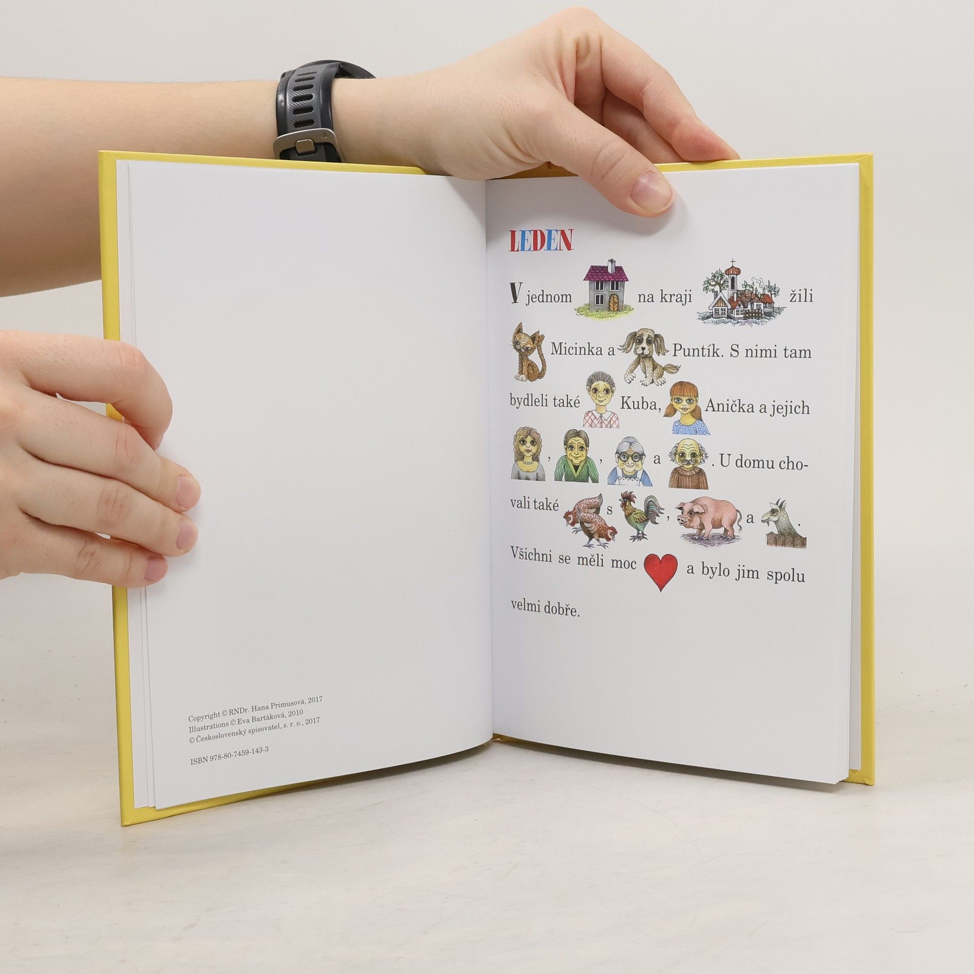 V knížce se dočteme o všech měsících v roce, o tom, jaké je počasí, jaké se slaví svátky, ale i o tom, jak byly děti nemocné či pracovaly na zahradě. Text místy nahrazen obrázky, tzv. malované čtení.