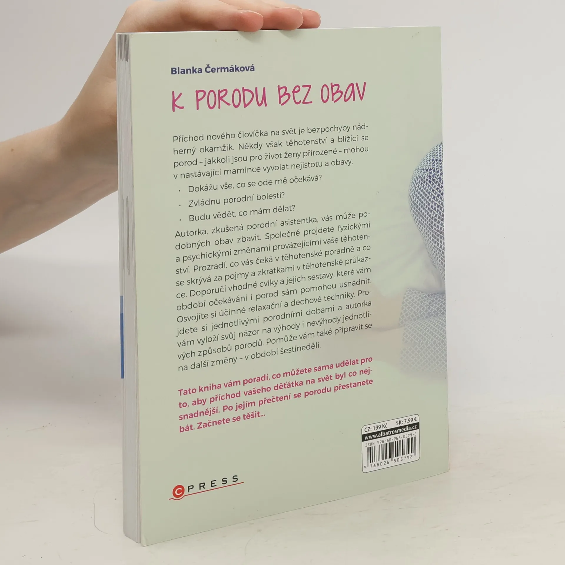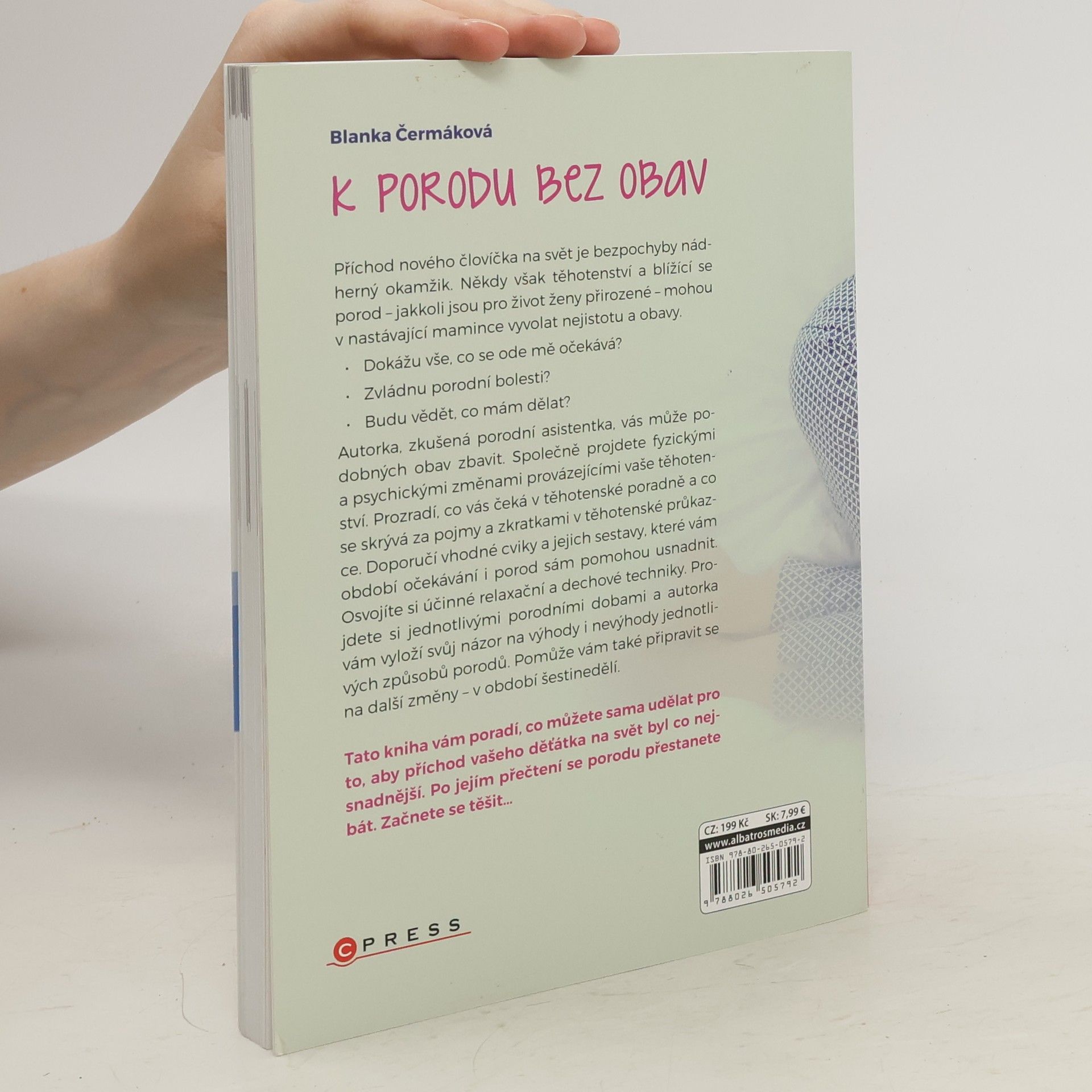 Po přečtení knížky se porodu přestanete bát. Začnete se těšit... Příchod nového človíčka na svět je bezpochyby nádherný okamžik. Někdy však těhotenství a blížící se porod – jakkoli jsou pro život ženy přirozené – mohou u nastávající maminky vyvolat nejistotu a obavy. Dokážu vše, co se ode mě očekává? Zvládnu porodní bolesti? Budu vědět, co mám dělat? Autorka, zkušená porodní asistentka, vás může podobných obav zbavit. Laskavým způsobem vám předá své zkušenosti, které vám pomohou připravit se na příchod vašeho potomka tak, že si porod mnohem lépe užijete.