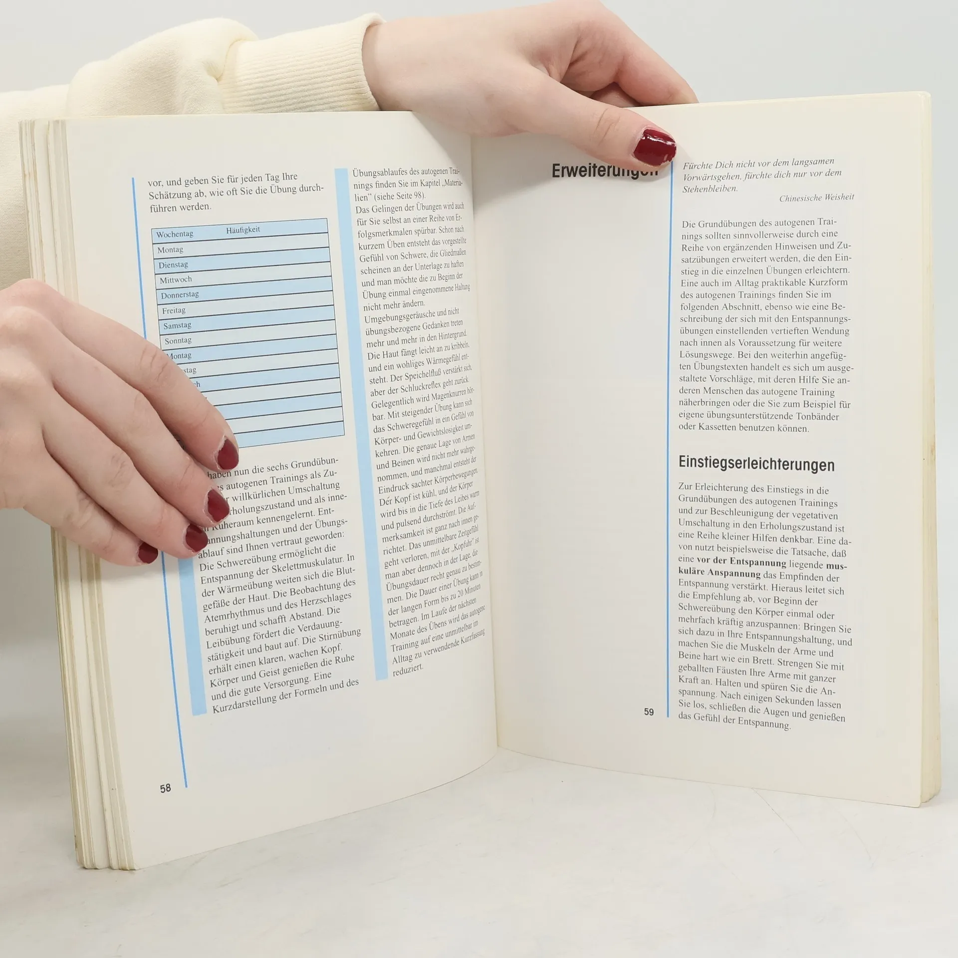 Ein praktischer Ratgeber zur Erlernung des Autogenen Trainings und verwandter Entspannungstechniken; reich illustriert.