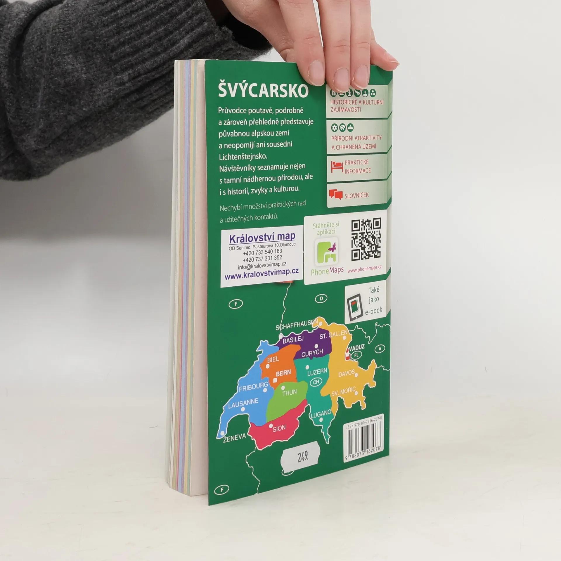 Průvodce přehledně a podrobně seznamuje s nejvýznamnějšími turistickými cíli Švýcarska. Popisuje atraktivní území švýcarské části Alp včetně světoznámých středisek jako jsou Grindelwald, Zermatt či Saas Fee, dále všechna důležitá švýcarská města i oblast Švýcarského Jury. Jedna kapitola je věnována také Lichtenštejnsku. Podrobná charakteristika obsahuje všeobecné informace o historii, přírodě a památkách Švýcarska, stejně jako řadu praktických rad pro turisty, včetně možností ubytování a užitečných kontaktů. Publikace je přehledně členěna podle jednotlivých turistických oblastí, popis nejzajímavějších míst doplňují mapy, plány měst a množství fotografií. Nechybí slovníček místních pojmů a rejstřík.