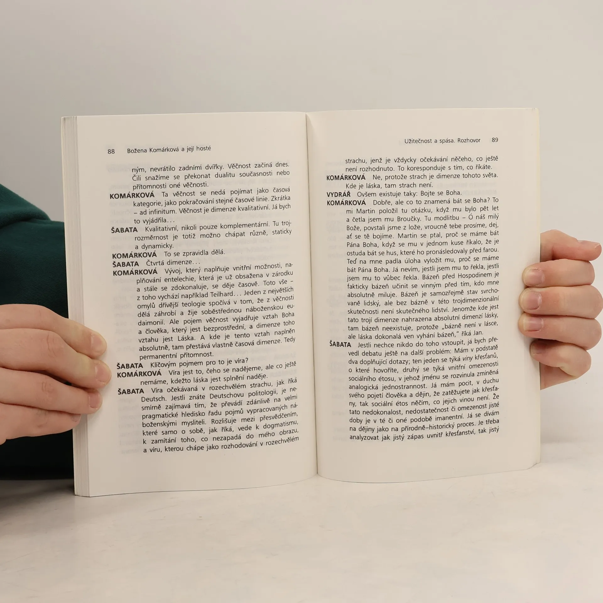 Eseje na společenská a teologická témata, které autorka přednášela brněnskému disidentskému okruhu. Součástí knihy je i redigovaný záznam diskusí, které jednotlivé texty vyvolaly. Diskutují Jaroslav Šabata, Jan Šimsa, Milan Uhde aj.