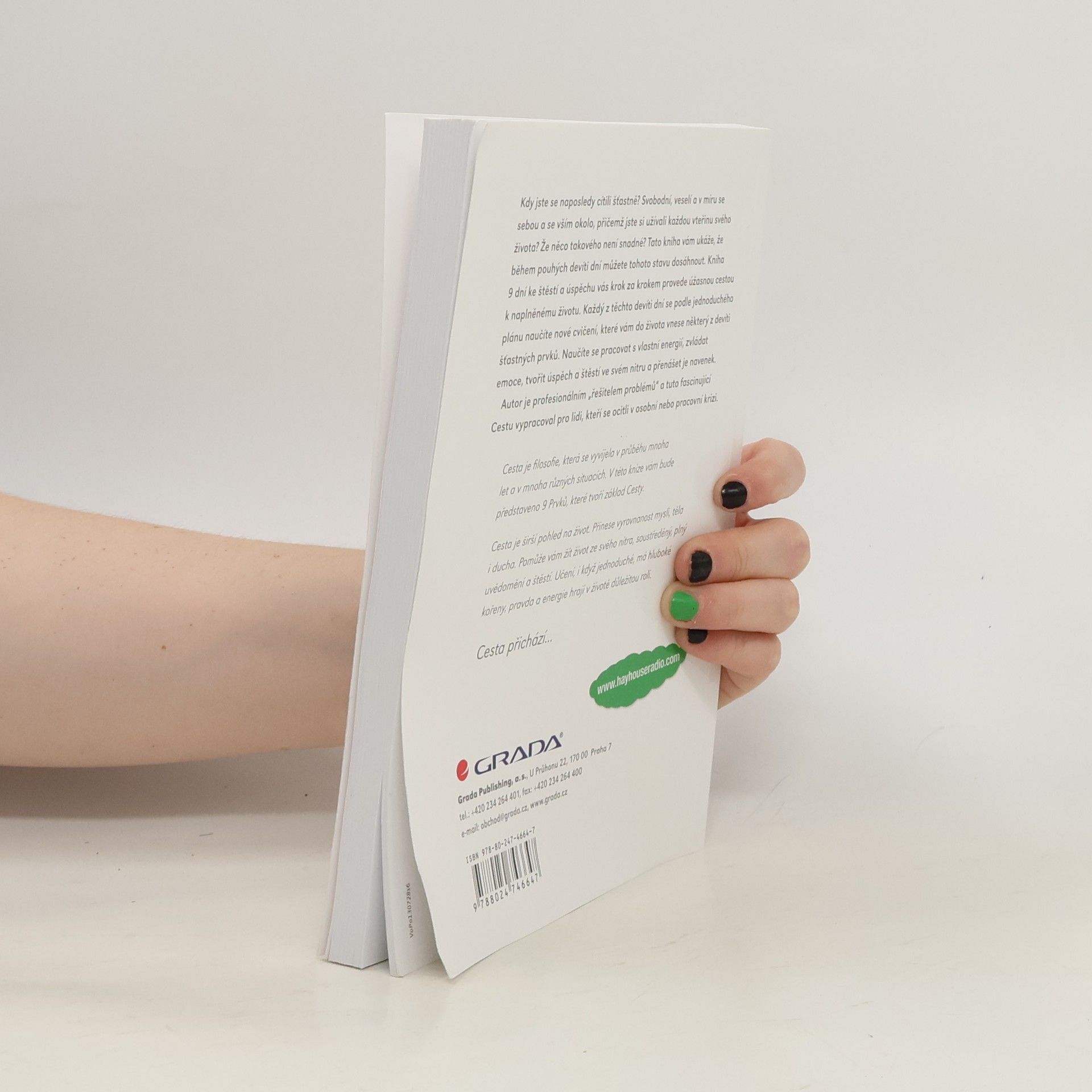 Kdy jste se naposledy cítili šťastně a v míru se sebou? Tato kniha vám ukáže, jak během devíti dní dosáhnout tohoto stavu. Představuje krok za krokem cestu k naplněnému životu, kde se každý den naučíte nové cvičení, které vám přinese některý z devíti šťastných Prvků. Získáte dovednosti pro práci s vlastní energií, zvládání emocí a vytváření úspěchu a štěstí ve svém nitru, které pak přenesete do svého okolí. Autor, profesionální „řešitel problémů“, navrhl tuto fascinující Cestu pro ty, kteří čelí osobním nebo pracovním krizím. Vyrovnaná energie přináší pozitivnější pohled na život a usnadňuje jeho průběh. Uvidíte konce jako nové začátky a místo problémů se zaměříte na jejich řešení. Šťastní lidé trpí méně depresemi, vedou plnější životy, jsou zdravější a mají pozitivnější pohled na svět. Štěstí není dáno genetikou, ale je to pocit, který při správné péči vyzařuje ven a ovlivňuje váš život. Cesta je filosofie, která se vyvíjela v průběhu let a v různých situacích, a představuje 9 Prvků jako základ. Přinese vám vyrovnanost mysli, těla a ducha a pomůže žít život plný uvědomění a štěstí. Učení, i když jednoduché, má hluboké kořeny a pravda s energií hrají klíčovou roli. Cesta přichází…