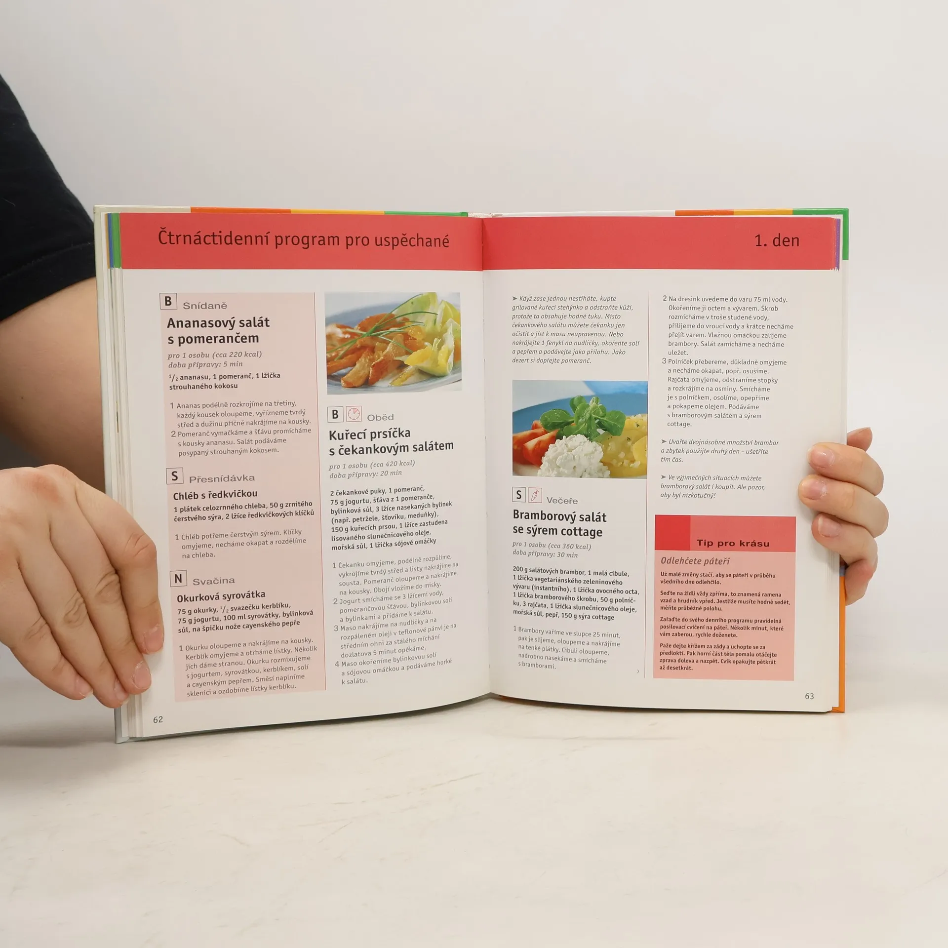 Kniha plná receptů dělené stravy, doplněna různými cviky a obsahující čtrnáctidenní programy pro hubnutí.