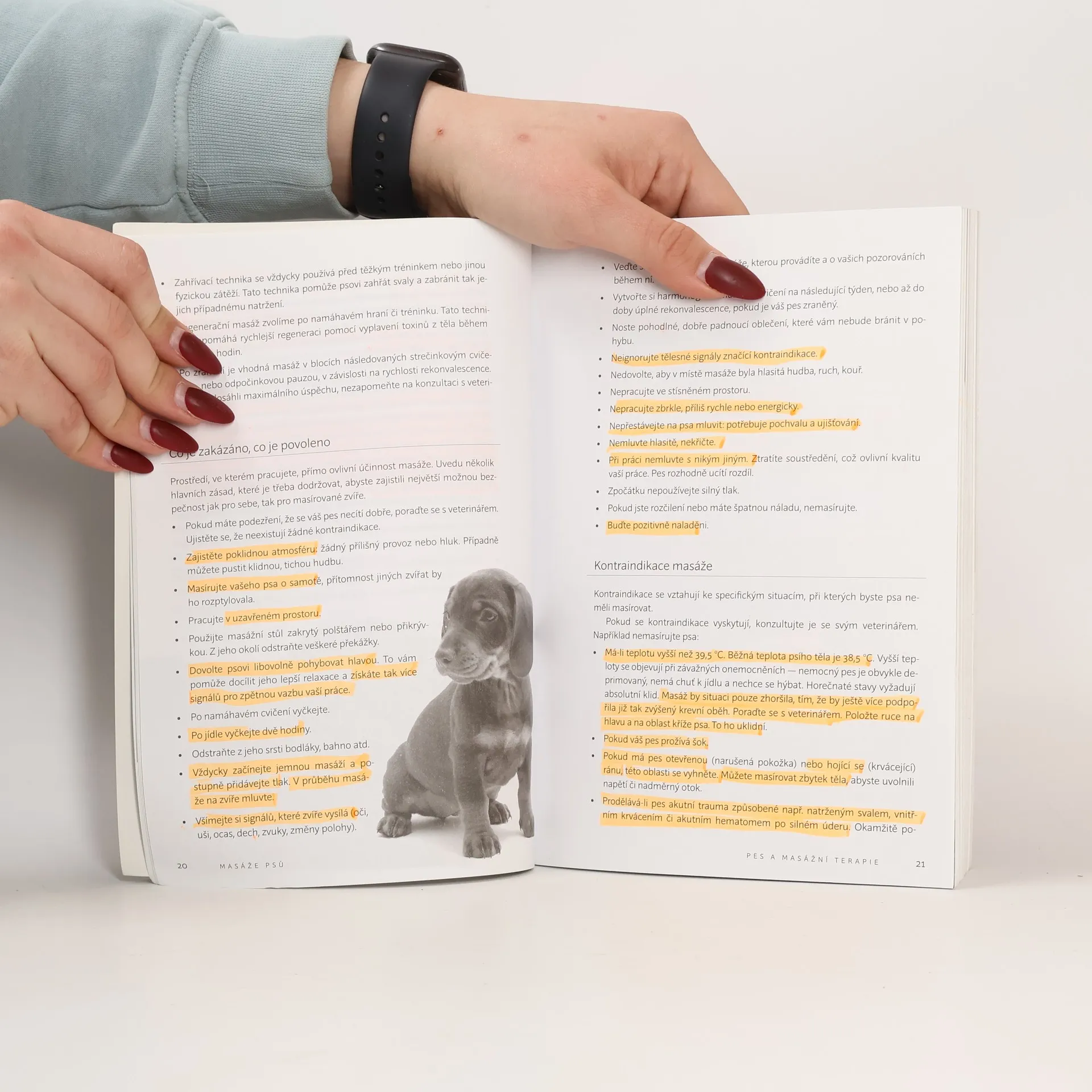 Masáží můžete svého psího miláčka zklidnit, připravit na sportovní výkon, pomoci mu při zranění nebo zmírnit jeho chronické bolesti. Masážní techniky vysvětlené v této knize se dokážete naučit tak dobře, že můžete prospět nejen zdraví svého psa, ale stát se i vyhledávaným specialistou. Kniha, která obsahuje více než dvě stovky ilustrací a fotografií, je zdrojem vynikajících informací o psím organismu i návodem k řešení specifických zdravotních problémů vašeho psa. Naučí vás správné lokalizaci bodů se svalovým napětím, diagnóze potíží a postupům léčby, správným masážním pohybům i základům psí anatomie a pohybového aparátu.