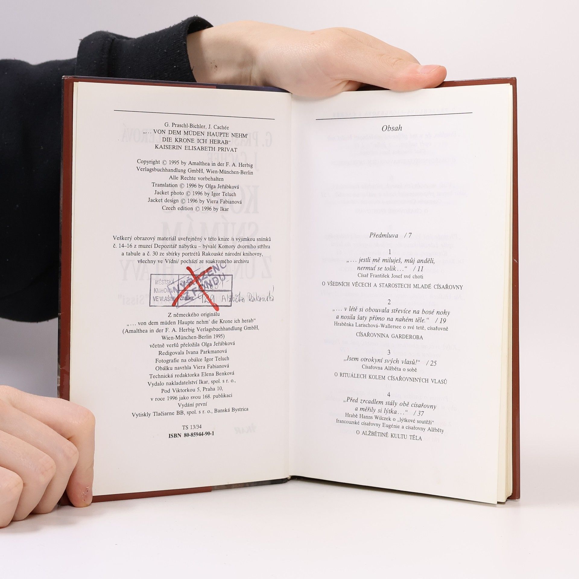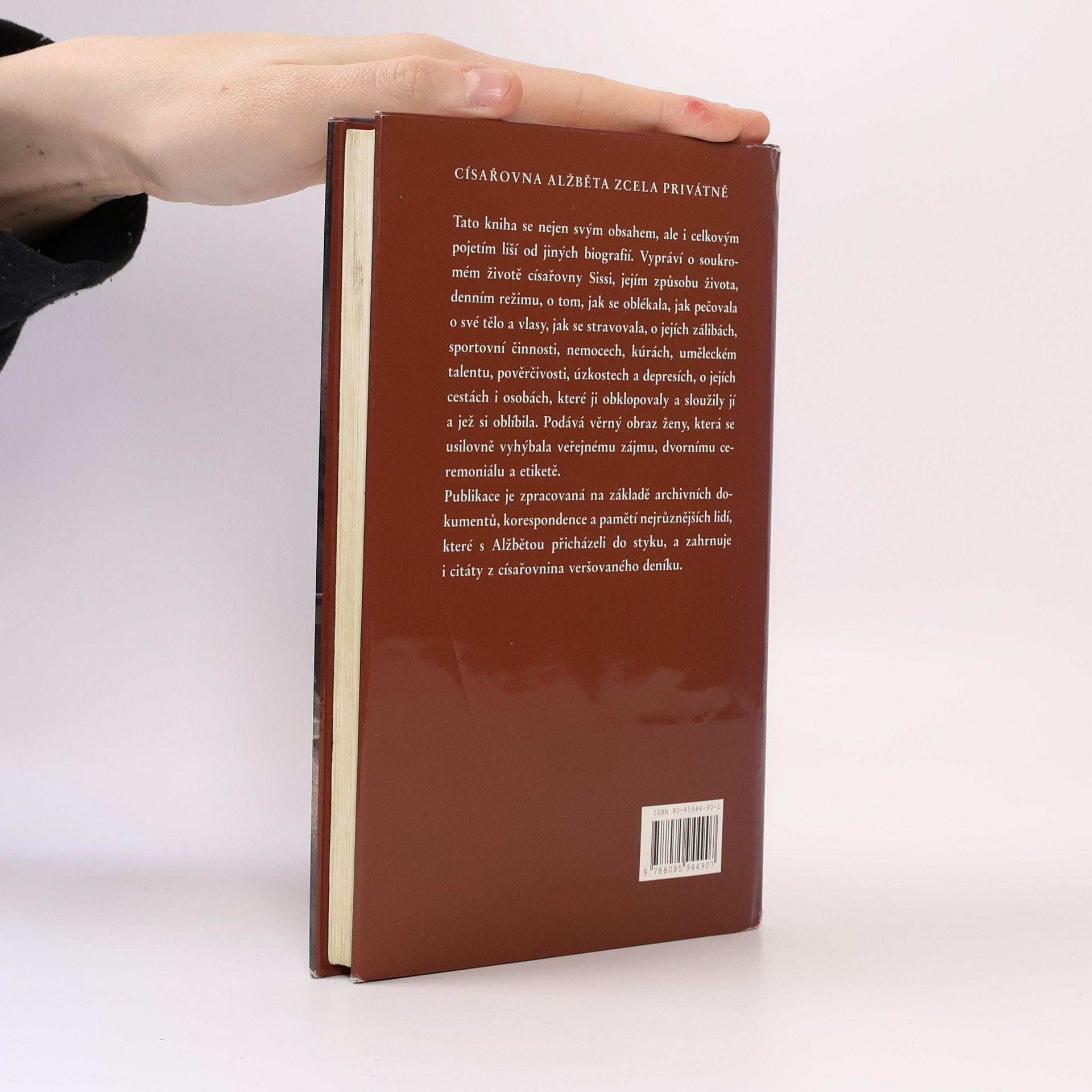 Soukromý život císařovny Sisi. Kniha je sestavena z archivních materiálů a vzpomínek pamětníků. O Alžbětě Habsburské - Wittelsbachové, zvané Sissi, psalo nejen v historii, ale i v současnosti mnoho autorů. Tato kniha se nejen svým obsahem, ale i celkovým pojetím liší od jiných biografií. Vypráví o soukromém životě císařovny Sissi, jejím způsobu života, denním režimu života, jak pečovala o své tělo a vlasy, jak se stravovala, o jejích zálibách, sportovní činnosti, pověrčivosti, úzkostí naplněném životě, nemocech, uměleckém talentu o osobách i citech, které jí obklopovaly a sloužily jí. Podává věrný obraz ženy, která se usilovně vyhýbala veřejnému zájmu, domovnímu ceremoniálu a etiketě. Vypráví o tom, jak kontrolovala svou váhu a míry, neboť kult krásy a dokonalé postavy patřil k jejímu hlavním zájmům. Kráse přinášela mnoho obětí, měla od mládí špatné zuby a usmívala se proto se zavřenými ústy. Jakmile se jí jakákoliv drobná vyrážka, celé dny se vyhýbala společnosti a od svých pětačtyřiceti let se nedala ani portrétovat ani fotografovat. Publikace je zpracována na základě archivních dokumentů, korespondence a pamětí nejrůznějších lidí, které s Alžbětou přicházeli do styku a dokonce cituje i císařovnin deník.... celý text