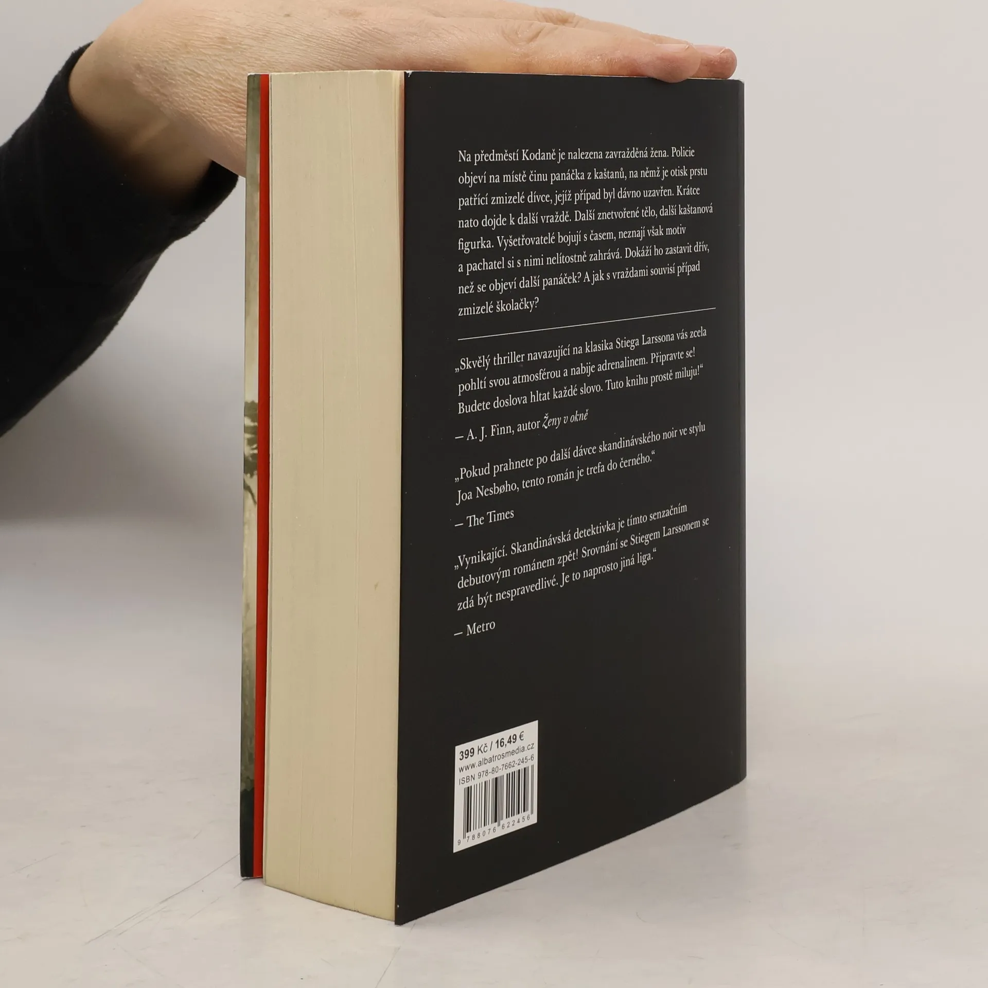 Podmanivý thriller od autora dánského seriálového hitu Zločin. Jednoho sychravého podzimního dne najde policie na předměstí Kodaně tělo mladé ženy. Někdo ji brutálně zavraždil a uřízl jednu ruku. Nad obětí visí panáček z kaštanů. Případu se ujímá mladá a ambiciózní vyšetřovatelka Naia Thulinová. Za parťáka dostane vyhořelého kolegu Marka Hesse, kterého právě vyhodili z hlavního sídla Europolu v Haagu a poslali zpět do Kodaně. Brzy přijdou na to, že kaštanový panáček na sobě nese stopu po zmizelé dívce, o které se všichni domnívají, že byla před rokem zavražděna: jedná se o dceru Rosy Hartungové, ministryně sociálních věcí. Případ je dávno objasněný a pachatel se k vraždě přiznal. Krátce nato je ale nalezena další oběť a s ní i další kaštanová figurka se stopou po mrtvé dívce. Thulinová s Hessem pátrají po souvislostech mezi případem dcery ministryně, zavražděnými ženami a vrahem, kterému se daří šířit strach po celé zemi. Hrají o čas. Obávají se, že se pachatel vydal na vražednou misi, která pro něho ještě zdaleka neskončila.