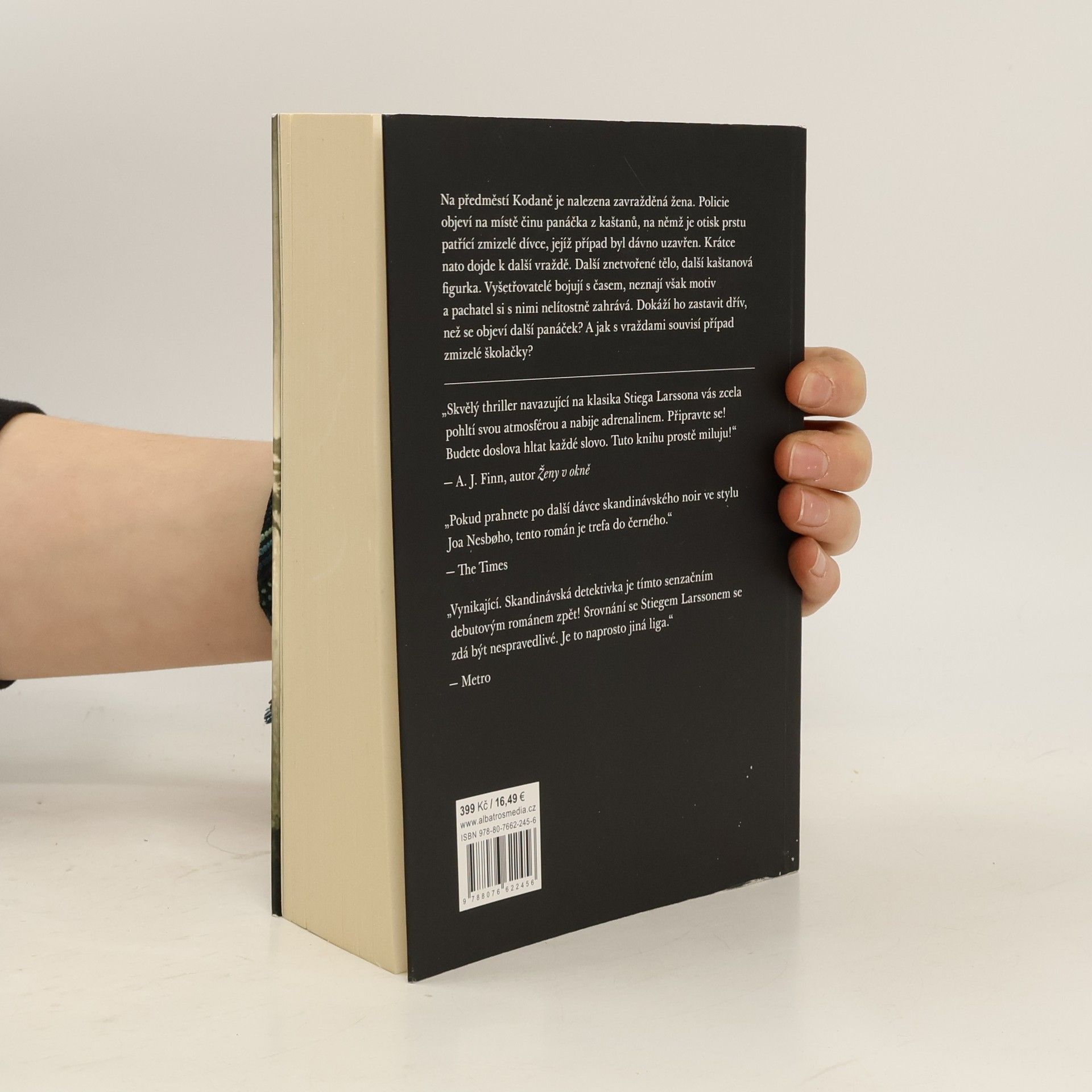 Podmanivý thriller od autora dánského seriálového hitu Zločin. Jednoho sychravého podzimního dne najde policie na předměstí Kodaně tělo mladé ženy. Někdo ji brutálně zavraždil a uřízl jednu ruku. Nad obětí visí panáček z kaštanů. Případu se ujímá mladá a ambiciózní vyšetřovatelka Naia Thulinová. Za parťáka dostane vyhořelého kolegu Marka Hesse, kterého právě vyhodili z hlavního sídla Europolu v Haagu a poslali zpět do Kodaně. Brzy přijdou na to, že kaštanový panáček na sobě nese stopu po zmizelé dívce, o které se všichni domnívají, že byla před rokem zavražděna: jedná se o dceru Rosy Hartungové, ministryně sociálních věcí. Případ je dávno objasněný a pachatel se k vraždě přiznal. Krátce nato je ale nalezena další oběť a s ní i další kaštanová figurka se stopou po mrtvé dívce. Thulinová s Hessem pátrají po souvislostech mezi případem dcery ministryně, zavražděnými ženami a vrahem, kterému se daří šířit strach po celé zemi. Hrají o čas. Obávají se, že se pachatel vydal na vražednou misi, která pro něho ještě zdaleka neskončila.