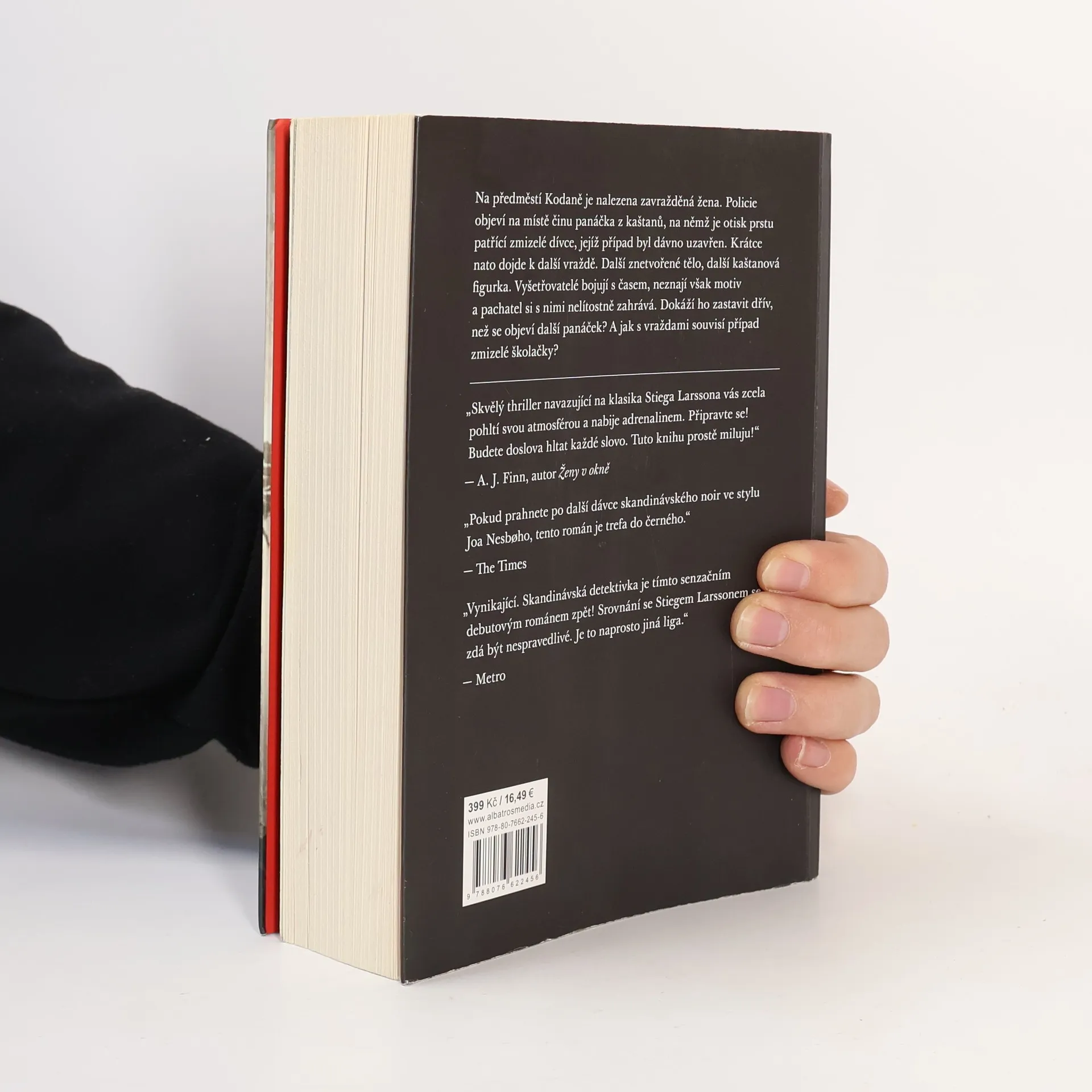Podmanivý thriller od autora dánského seriálového hitu Zločin. Jednoho sychravého podzimního dne najde policie na předměstí Kodaně tělo mladé ženy. Někdo ji brutálně zavraždil a uřízl jednu ruku. Nad obětí visí panáček z kaštanů. Případu se ujímá mladá a ambiciózní vyšetřovatelka Naia Thulinová. Za parťáka dostane vyhořelého kolegu Marka Hesse, kterého právě vyhodili z hlavního sídla Europolu v Haagu a poslali zpět do Kodaně. Brzy přijdou na to, že kaštanový panáček na sobě nese stopu po zmizelé dívce, o které se všichni domnívají, že byla před rokem zavražděna: jedná se o dceru Rosy Hartungové, ministryně sociálních věcí. Případ je dávno objasněný a pachatel se k vraždě přiznal. Krátce nato je ale nalezena další oběť a s ní i další kaštanová figurka se stopou po mrtvé dívce. Thulinová s Hessem pátrají po souvislostech mezi případem dcery ministryně, zavražděnými ženami a vrahem, kterému se daří šířit strach po celé zemi. Hrají o čas. Obávají se, že se pachatel vydal na vražednou misi, která pro něho ještě zdaleka neskončila.