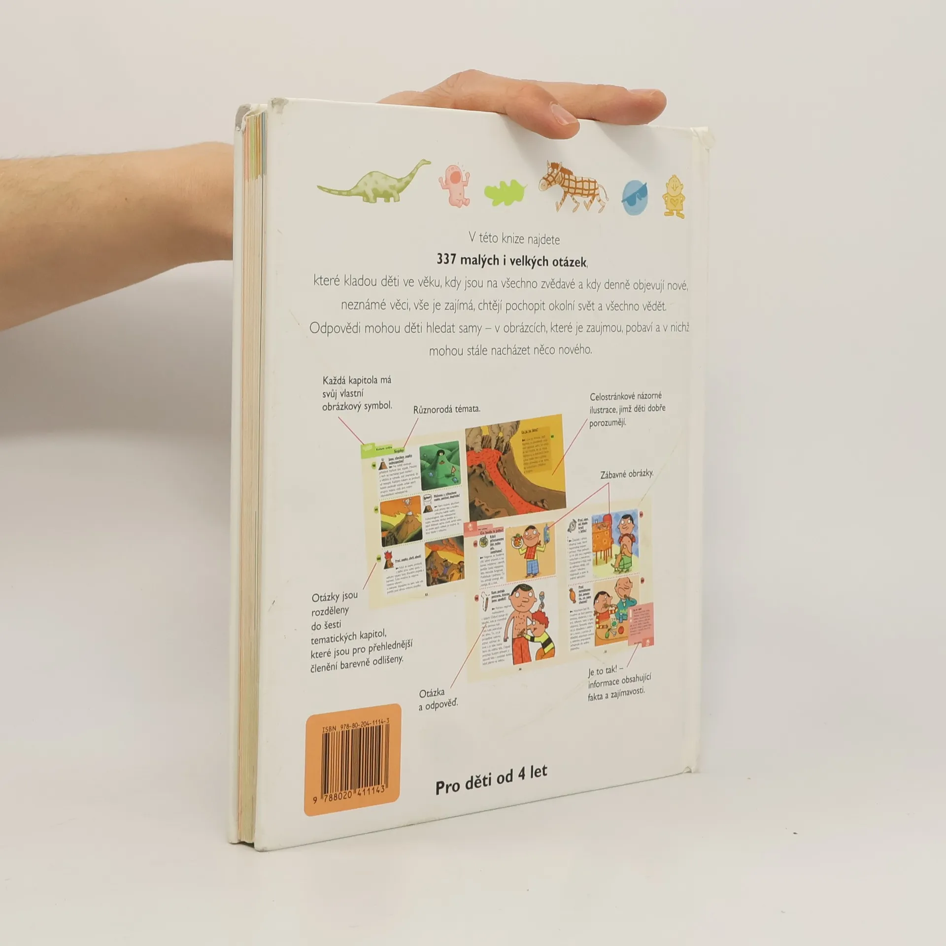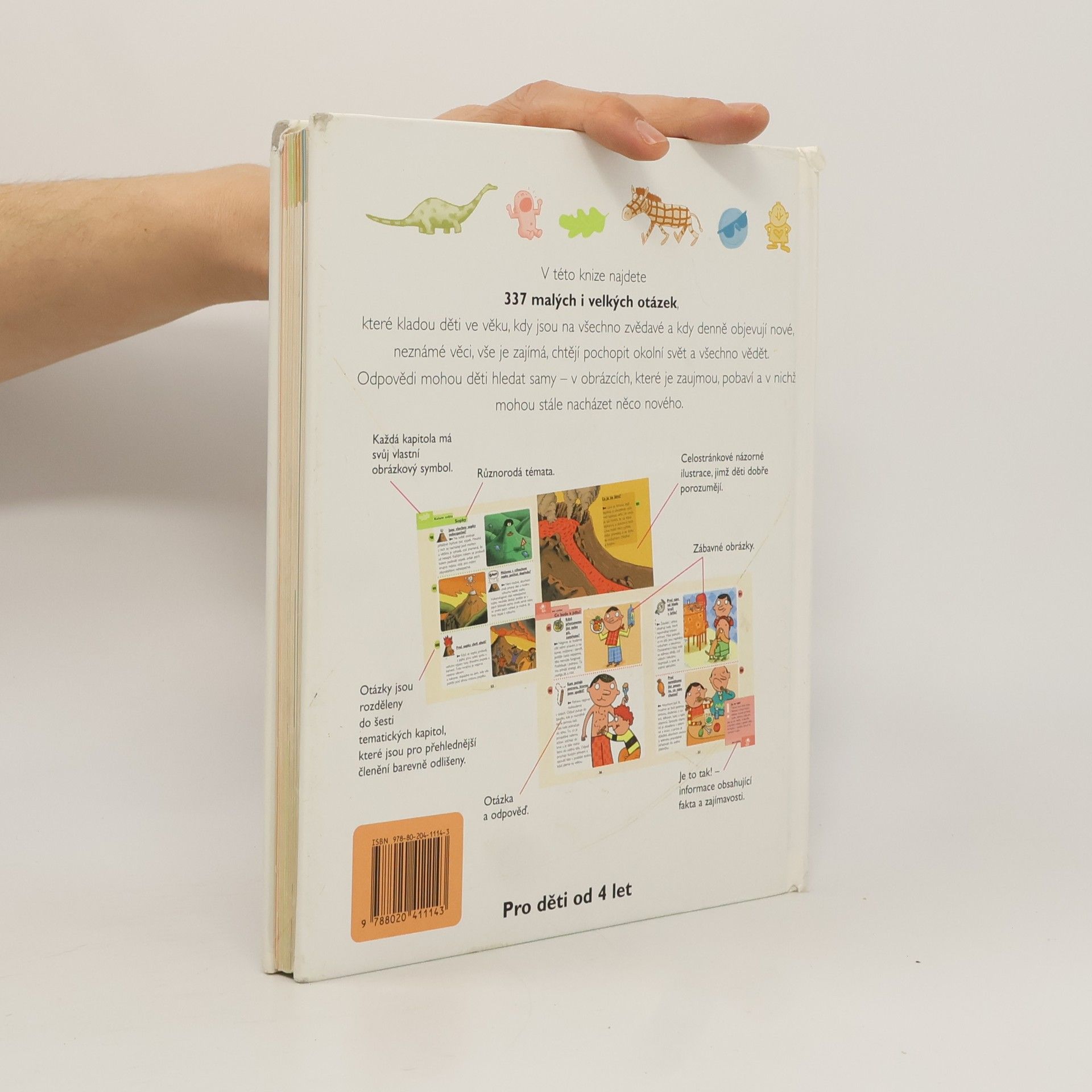 Všeobecná ilustrovaná encyklopedie pro děti od čtyř let, která přístupnou formou odpovídá na otázky ze života kolem nás. Kniha obsahuje 337 otázek, které většinou kladou děti v předškolním věku. Otázky jsou rozděleny do šesti tematických kapitol, které jsou pro přehlednější členění barevně odlišeny. Jak napovídají jednotlivé názvy kapitol, obsahově je kniha velmi rozmanitá: Lidské tělo, Rosteme, Kolem světa, Na procházce, Zvířata, Co se děje ve Vesmíru, Na Zemi, Já a ti druzí, Já a svět. Texty jsou krátké, doplněné četnými ilustracemi, součástí je rejstřík použitých hesel.