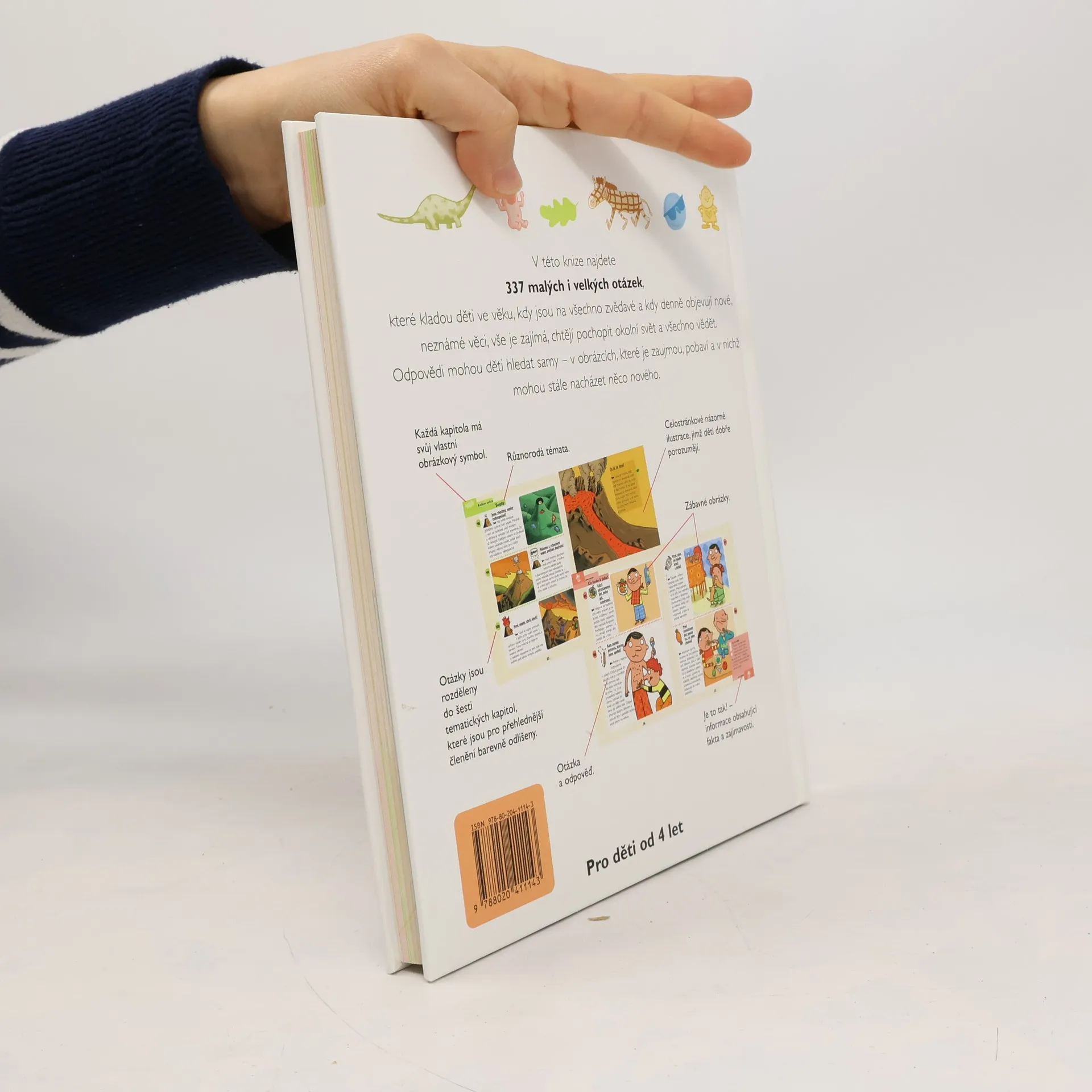 Všeobecná ilustrovaná encyklopedie pro děti od čtyř let, která přístupnou formou odpovídá na otázky ze života kolem nás. Kniha obsahuje 337 otázek, které většinou kladou děti v předškolním věku. Otázky jsou rozděleny do šesti tematických kapitol, které jsou pro přehlednější členění barevně odlišeny. Jak napovídají jednotlivé názvy kapitol, obsahově je kniha velmi rozmanitá: Lidské tělo, Rosteme, Kolem světa, Na procházce, Zvířata, Co se děje ve Vesmíru, Na Zemi, Já a ti druzí, Já a svět. Texty jsou krátké, doplněné četnými ilustracemi, součástí je rejstřík použitých hesel.