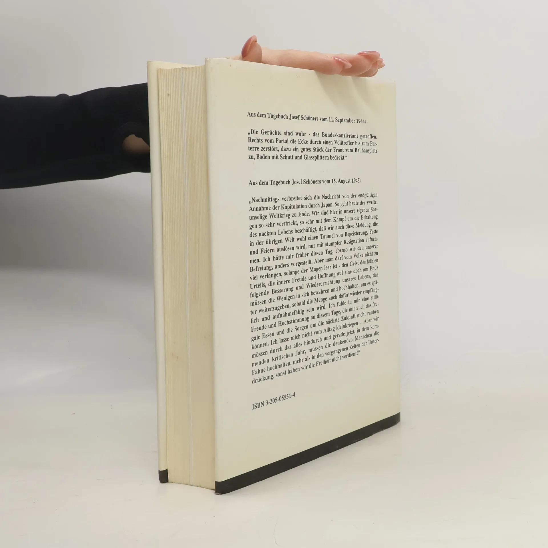 Josef Schöner (1904–1978), einer der Spitzendiplomaten Österreichs nach 1945, hielt in seinen Tagebuchaufzeichnungen – und in einer photographischen Dokumentation – einen der dramatischsten Zeitabschnitte der Geschichte Österreichs fest: jene fünfzehn Monate zwischen dem 10. September 1944, an dem mit dem ersten schweren Bombenangriff auf die inneren Bezirke auch über Wien und seine Bewohner die unmittelbare Kriegswirklichkeit hereinbrach, und dem 3. Dezember 1945, an dem Leopold Figl zum ersten Bundeskanzler der Zweiten Republik bestellt wurde - Österreich vor der „Stunde Null“, in der „Stunde Null“ und nach der „Stunde Null“. Das breite Spektrum seiner Beobachtungen, Reflexionen und Analysen sowie die atmosphärische Dichte seiner Eintragungen zeigen ihn als einen – wie er sich selbst bezeichnete – „neugierigen Menschen“ und als sensiblen und kritischen Chronisten, der mit offenen Augen und Ohren aufnahm und notierte, was in dieser Zeit radikaler und auch schmerzvoller Veränderungen in allen Lebensbereichen um ihn vor sich ging. Josef Schöner hatte die Begabung, vielleicht auch die Leidenschaft eines „Reporters“ im besten Sinne des Wortes. Seine Tagebuchaufzeichnungen öffnen neue Tore des Zugangs zur Geschichte Österreichs und Wiens im Übergang von Krieg zu Frieden, im Übergang von der NS-Herrschaft zur wieder unabhängigen demokratischen Republik.