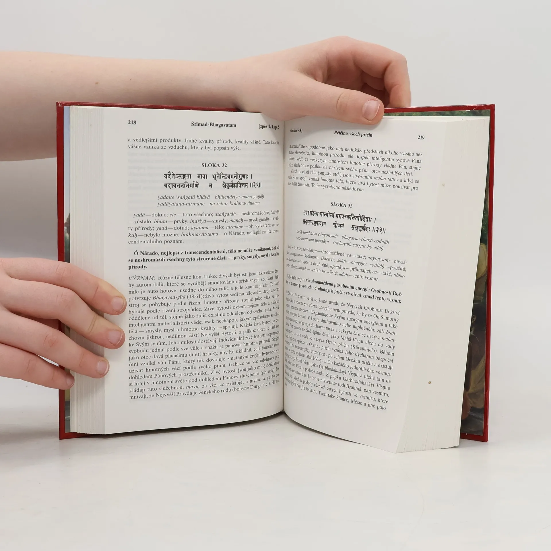 Zpěv druhý "Vesmírný projev" s původními sanskrtskými texty, přepisem do anglického písma, českými synonymy, překlady a podrobnými výklady.