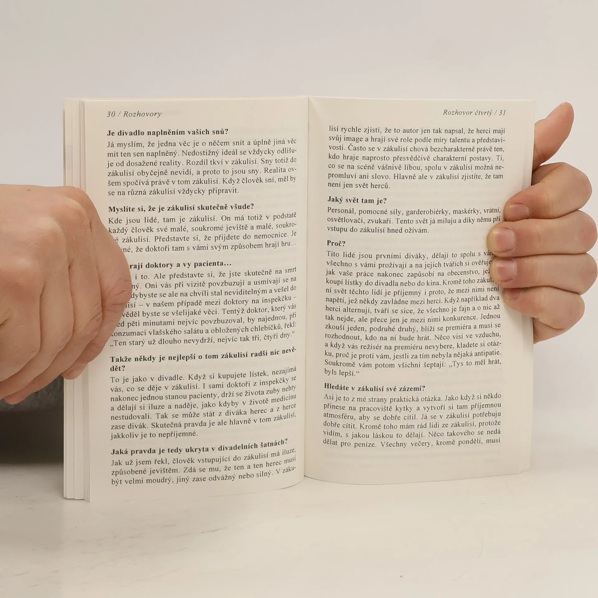 Útlá knížka, kterou přečtete na posezení u kávy po nedělním obědě. Obsahuje sedm rozhovorů, jež otvírají duši jednoho z největších slovenských herců. O čem se v ní mluví: rozhovor první: O mamutech, sochách a Divadle na Korze rozhovor druhý: O vlivu Jánošíka na slovenské herectví, o zapeklitosti člověčího osudu a drobném lidském humoru rozhovor třetí: O dětství a schopnosti zvedat zvony rozhovor čtvrtý: O filmu, jevišti a zákulisí, o křehkosti a síle divadla rozhovor pátý: O symbolech a o tom, kdo je a není komik rozhovor šestý: O rubu a líci slávy, rodině, soukromí a hrůzostrašných snech rozhovor sedmý: O Bohu, církvi a sexu