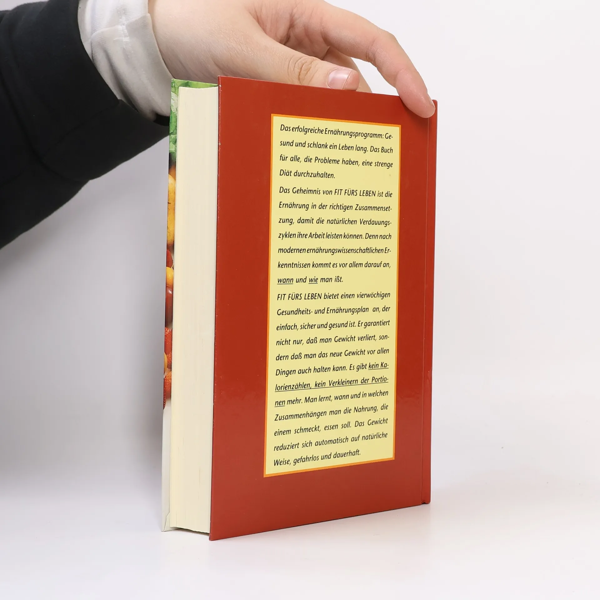 Dieses Buch ist für alle, die Probleme haben, eine strenge Diät durchzuhalten. Das Geheimnis der hier vorgestellten Diät ist die Ernährung in der richtigen Zusammensetzung, damit die natürlichen Verdauungszyklen ihre Arbeit leisten können. Denn nach den modernen ernährungswissenschaftlichen Erkenntnissen kommt es vor allem darauf an, wann und wie man ißt. „Fit fürs Leben“ bietet einen vierwöchigen Gesundheits- und Fitnessplan an, der einfach, sicher und gesund ist. Er garantiert nicht nur, daß man Gewicht verliert, sondern vor allem, daß man das neue Gewicht auch halten kann. Es gibt kein Kalorienzählen, kein Verkleinern der Portionen mehr. Man lernt, wann und in welchen Zusammenstellungen man die Nahrung, die einem schmeckt, essen soll. Das Gewicht reduziert sich automatisch auf natürliche Weise, gefahrlos und dauerhaft.
