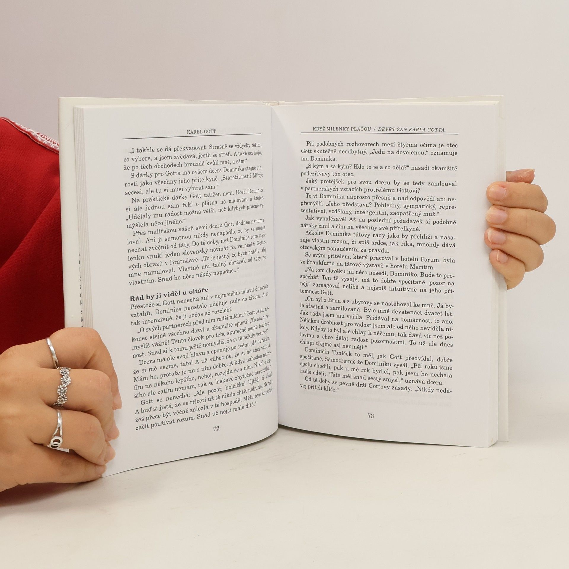 Ptát se Karla Gotta na ložnici, s tím člověk nikdy nepochodí. To je jeho intimní místo. Smějí tam s ním pouze ty vyvolené. Když se po milostném aktu Karel odebírá naproti do své pracovny, přítelkyně se zprvu s údivem ptají:"Kam jdeš?" Časem jim ale nezbývá nic jiného, než respektovat skutečnost, že Gott chodí "dospat" jinam. Proč? "To je taková zvláštní podvědomá neuroza. Pořád se hlídám, jestli vypadám esteticky, či neesteticky. Celý život, i ve spánku. Člověk má prostě do určité míry na nějakou dobu zmizet, aby se mohl uvolnit se vším všudy" A tak jako Kristián v podání Oldřicha Nového, Gott elegantně a v tichosti mizí. Jako by spolu s Kristiánem říkal: "Zavřete oči, odcházím..."