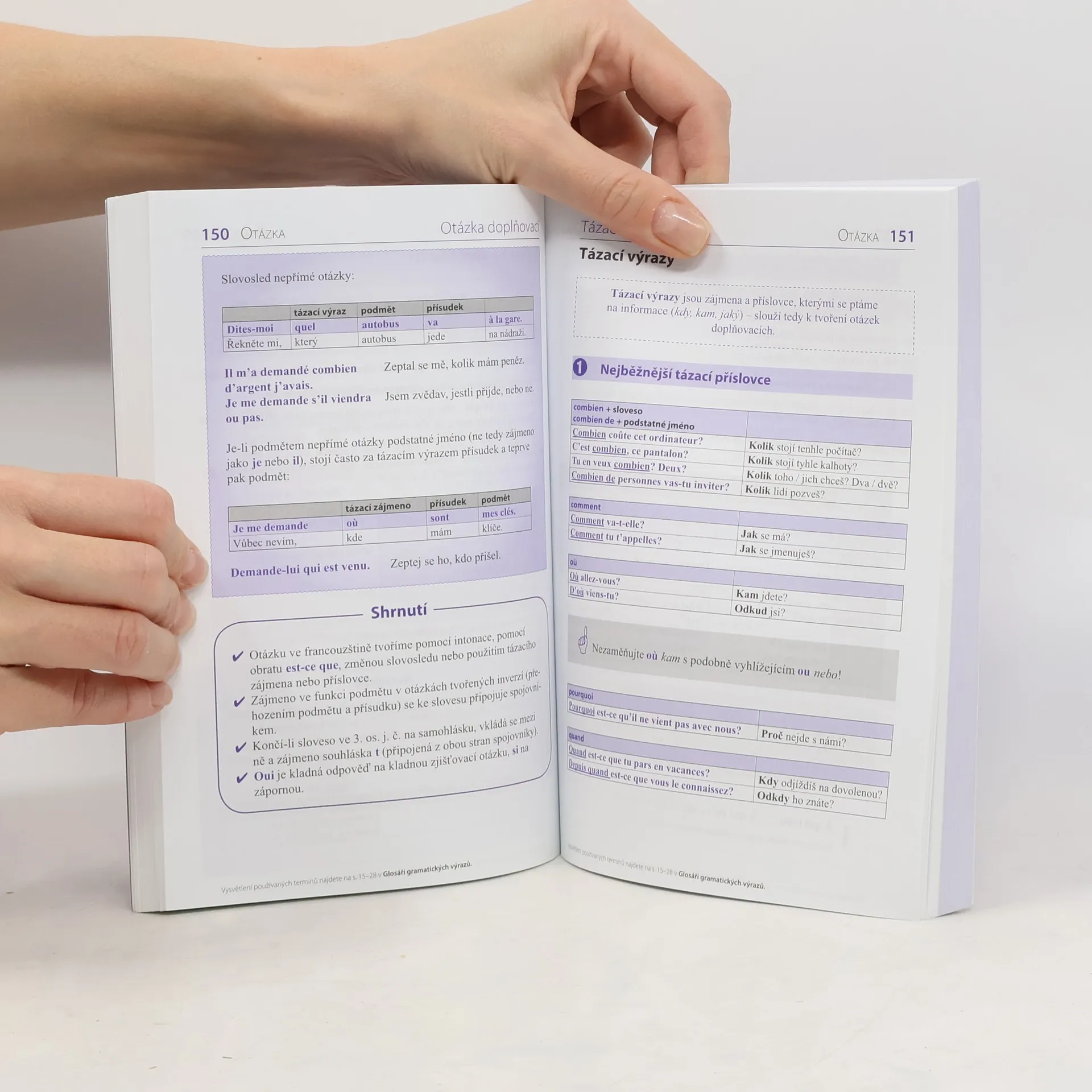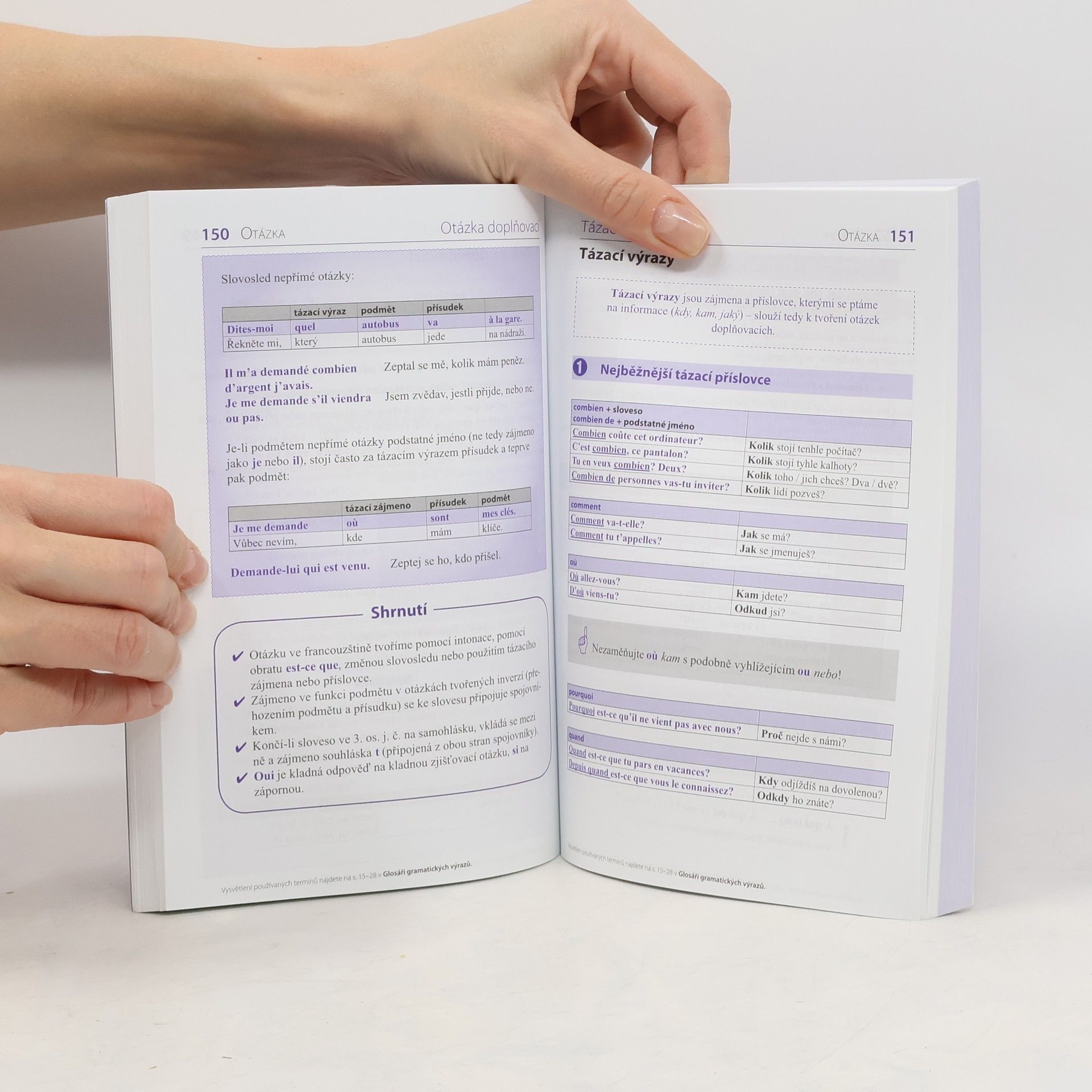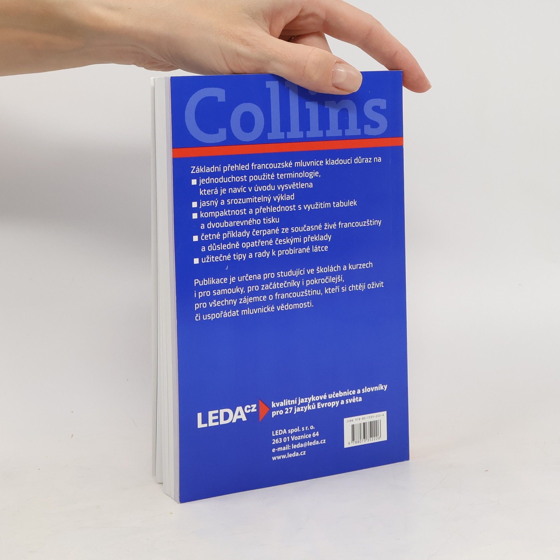 Základní přehled francouzské mluvnice kladoucí důraz na jednoduchost použité terminologie, která je navíc v úvodu vysvětlena, jasný, srozumitelný výklad a přehlednost, jíž napomáhá využití tabulek a dvoubarevný tisk. Výklad provázejí četné názorné příklady čerpané ze současné živé francouzštiny a důsledně opatřené českými překlady. U jednotlivých gramatických jevů jsou uváděny tipy a praktické rady, které napomáhají zapamatování nebo upozorňují na důležité souvislosti. Publikace je určena pro studující ve školách a kursech i pro samouky, a to pro začátečníky i pokročilejší, dále pro všechny zájemce o francouzštinu, kteří si chtějí oživit či uspořádat mluvnické vědomosti.