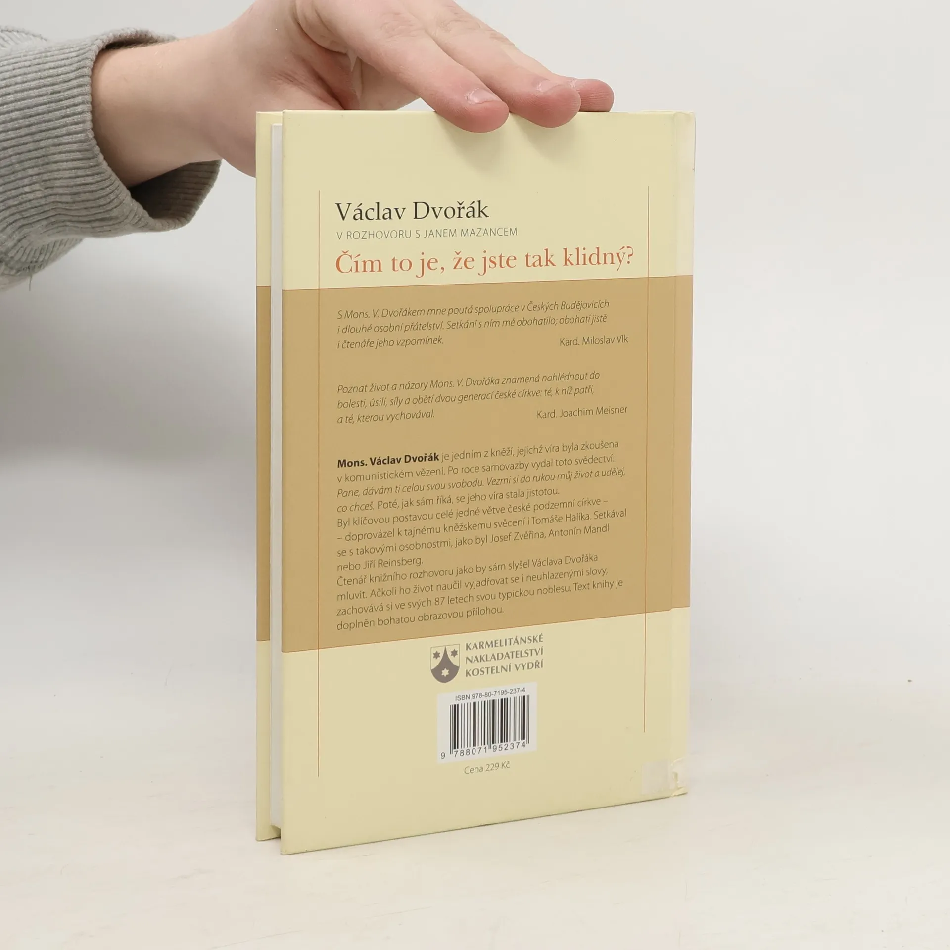 Václav Dvořák v rozhovoru s Janem Mazancem. Mons. Václav Dvořák je jedním z kněží, jejichž víra byla zkoušena v komunistickém vězení. Po roce samovazby vydal toto svědectví: Pane, dávám ti celou svou svobodu. Vezmi si do rukou můj život a udělej, co chceš. Poté, jak sám říká, se jeho víra stala jistotou. Byl klíčovou postavou celé jedné větve české podzemní církve – doprovázel k tajnému kněžskému svěcení i Tomáše Halíka. Setkával se s takovými osobnostmi, jako byl Josef Zvěřina, Antonín Mandl nebo Jiří Reinsberg. Čtenář knižního rozhovoru jako by sám slyšel Václava Dvořáka mluvit. Ačkoli ho život naučil vyjadřovat se i neuhlazenými slovy, zachovává si i ve svých 87 letech svou typickou noblesu. Text knihy je doplněn bohatou obrazovou přílohou.