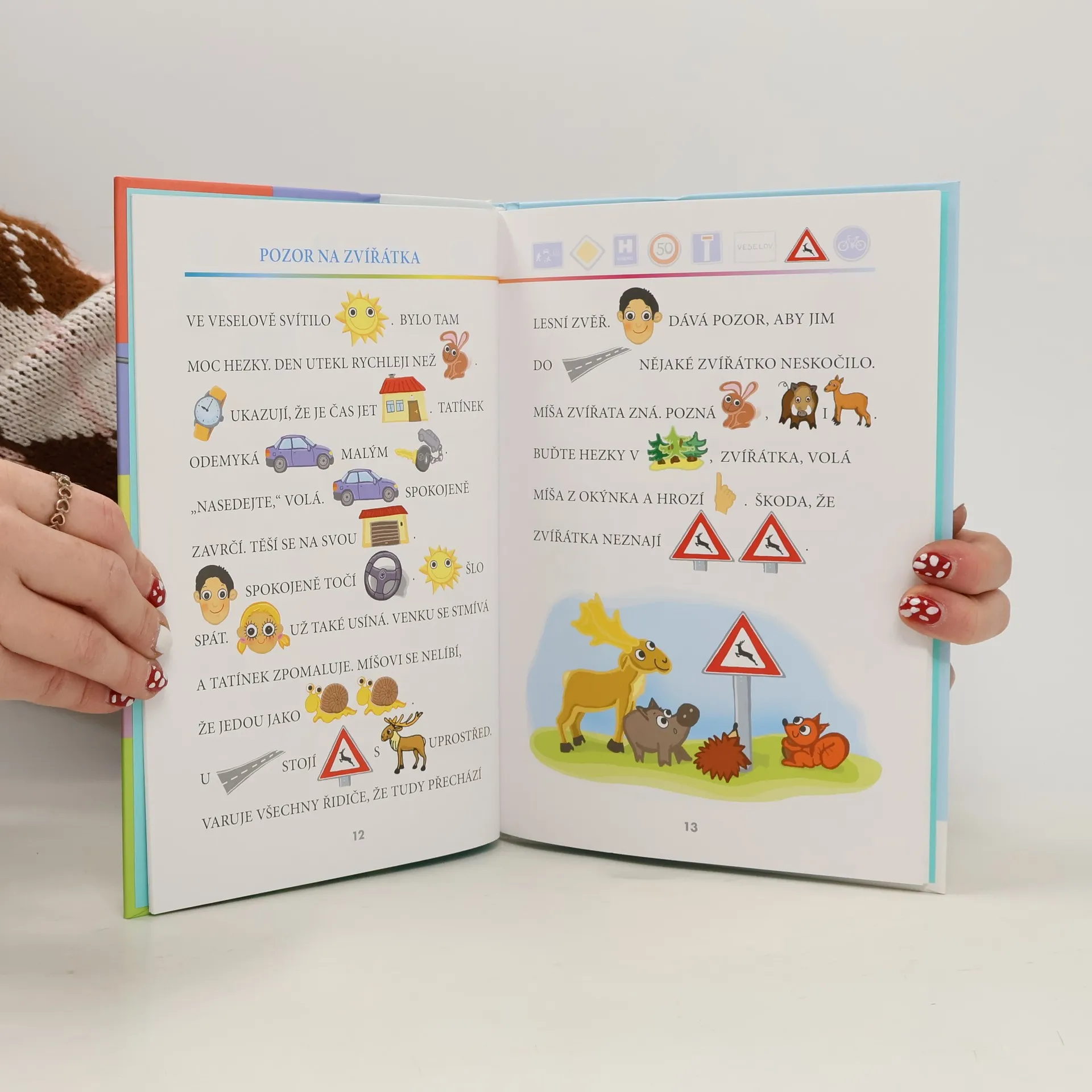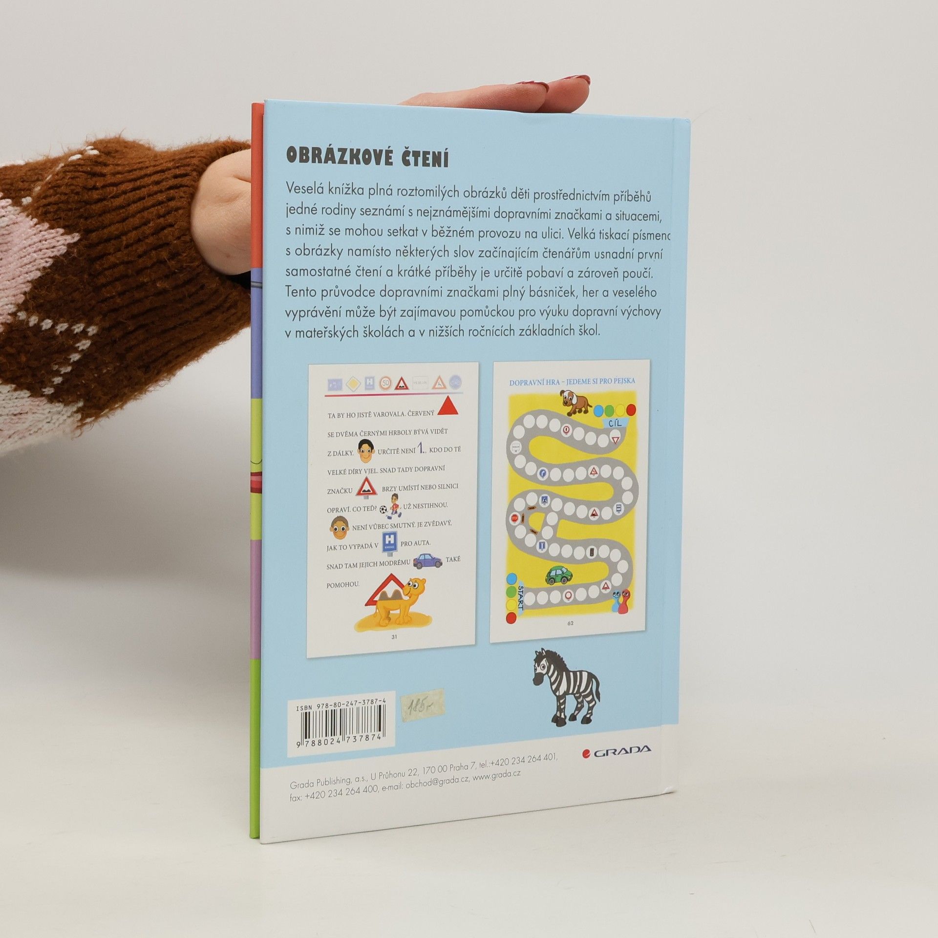 Veselá knížka plná roztomilých obrázků děti prostřednictvím příběhů jedné rodiny seznámí s nejznámějšími dopravními značkami a situacemi, s nimiž se mohou setkat v běžném provozu na ulici. Tento průvodce dopravními značkami plný básniček, her a veselého vyprávění může být zajímavou pomůckou pro výuku dopravní výchovy v mateřských školách a v nižších ročnících základních škol. Velká tiskací písmena s obrázky namísto některých slov začínajícím čtenářům usnadní první samostatné čtení a krátké příběhy je určitě pobaví a zároveň poučí.
