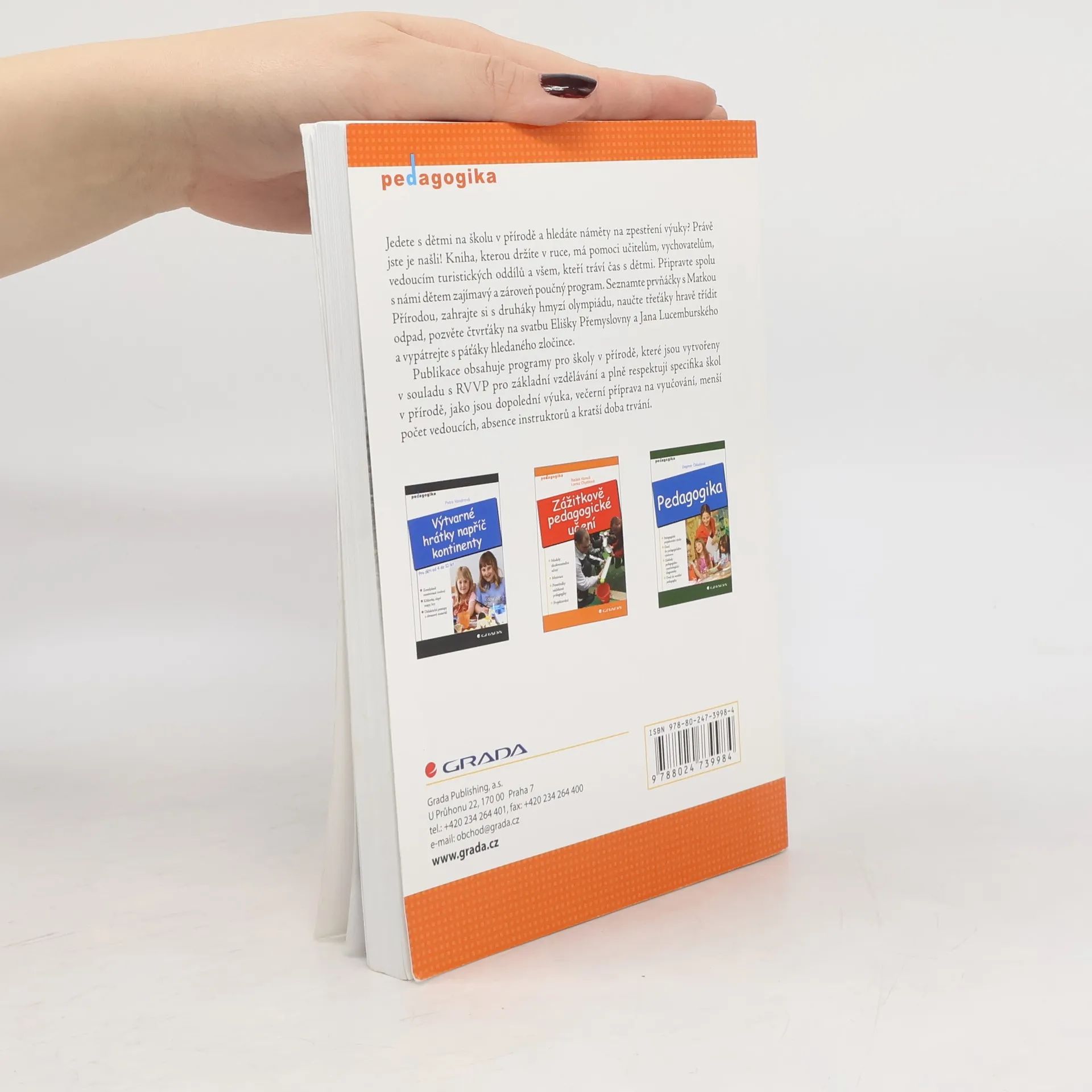Jedete s dětmi na školu v přírodě a hledáte náměty na zpestření výuky? Právě jste je našli! Kniha má pomoci učitelům, vychovatelům, vedoucím turistických oddílů a všem, kteří tráví čas s dětmi. Připravte spolu s námi dětem zajímavý a zároveň poučný program. Seznamte prvňáčky s Matkou Přírodou, zahrajte si s druháky hmyzí olympiádu, naučte třeťáky hravě třídit odpad, pozvěte čtvrťáky na svatbu Elišky Přemyslovny a Jana Lucemburského a vypátrejte s páťáky hledaného zločince.Publikace obsahuje programy pro školy v přírodě, které jsou vytvořeny v souladu s RVVP pro základní vzdělávání a plně respektují specifika škol v přírodě, jako jsou dopolední výuka, večerní příprava na vyučování, menší počet vedoucích, absence instruktorů a kratší doba trvání.