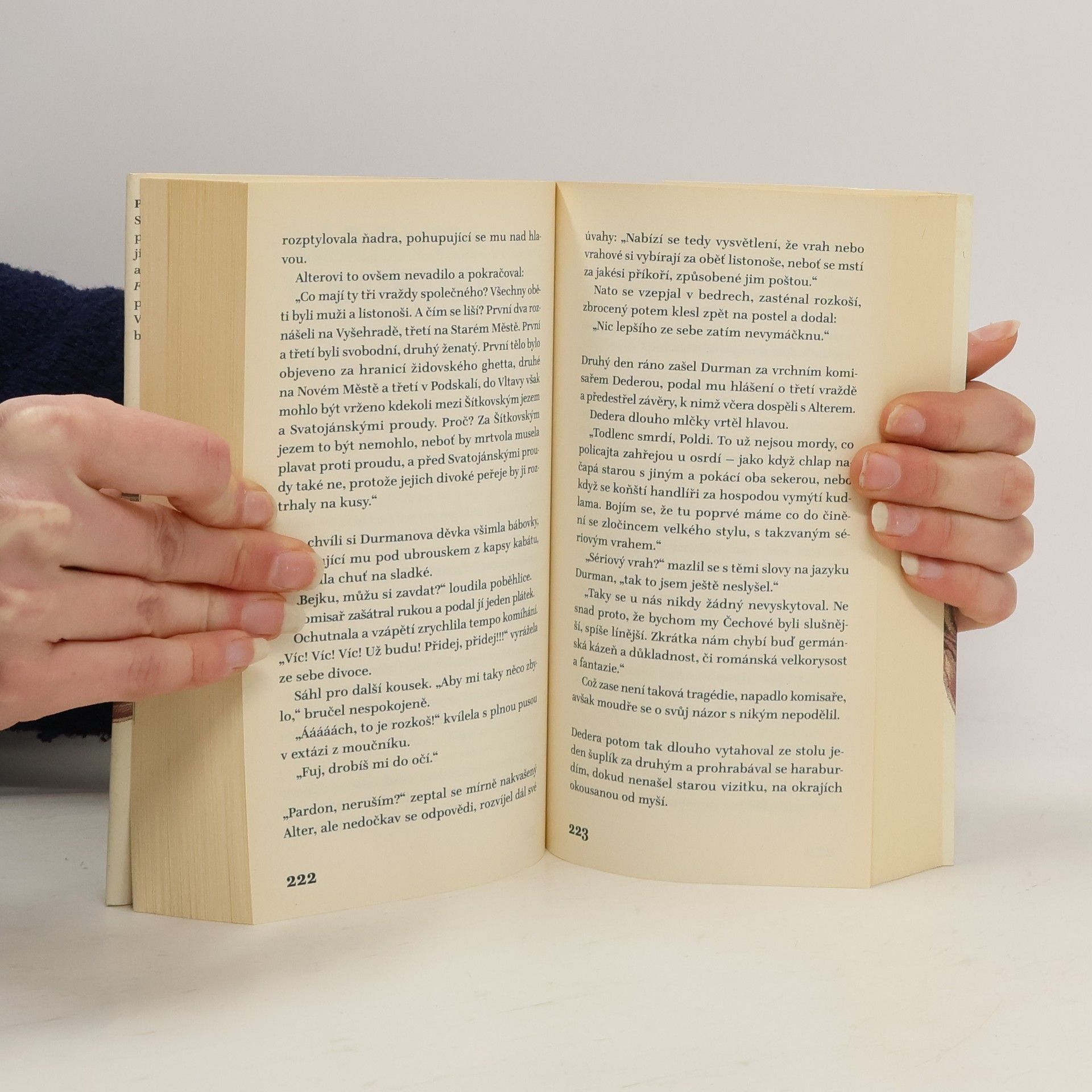 Fantaskní román se odehrává v roce 1866, na pozadí Prusko-rakouské války, a zkoumá relativitu trestu a jeho vykonávání. Hlavním příběhem je pátrání detektivů po sériovém vrahovi, které se prolíná s válečným konfliktem, a ukazuje rozpor mezi individuálními vraždami, jež jsou trestány, a institucionalizovaným zabíjením v armádě, které je odměňováno. Paralelní dějová linka sleduje Leopolda von Sacher-Masocha, historickou osobnost, jehož život a dílo naplňují ideu masochismu, přetvářející trest v rozkoš. Třetí rovina se zaměřuje na vysokou politiku: po prohrané válce Rakouské císařství odmění Maďary autonomií, zatímco Čechy potrestá nespravedlivými zákony. V závěru se všechny dějové linie spojí do překvapivé pointy. Hlavní postava, komisař Durman, je sympatický vyšetřovatel, který se kromě vražd věnuje i ženským vnadům a dobrému jídlu. Román nabízí opulentní zážitky, jako jsou honičky na střechách, návštěvy historických podniků a setkání s císařem Maxmiliánem. Ačkoli vše působí starosvětsky, odehrává se v roce 1866, kdy se začíná formovat moderní nacionalismus. Stančík vytvořil dílo, které by nemohlo chybět v jakémkoli pojednání o pražské literatuře.