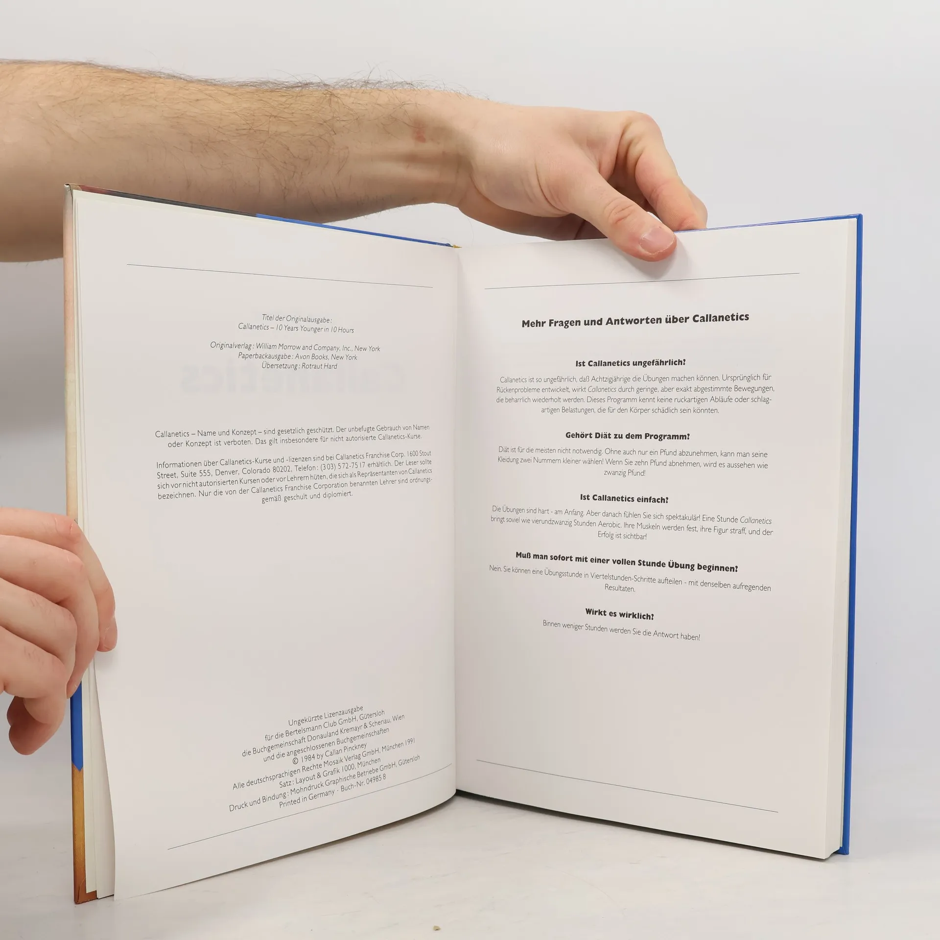 „Callanetics“ ist ein Körpertraining aus den USA, das mit seinen Übungen die Tiefenmuskulatur anspricht. Ohne Belastung der Gelenke und ohne Hilfsgeräte verhilft es in relativ kurzer Zeit zu sichtbaren Ergebnissen. Die Fotos zeigen, wie die Übungen durchzuführen sind.