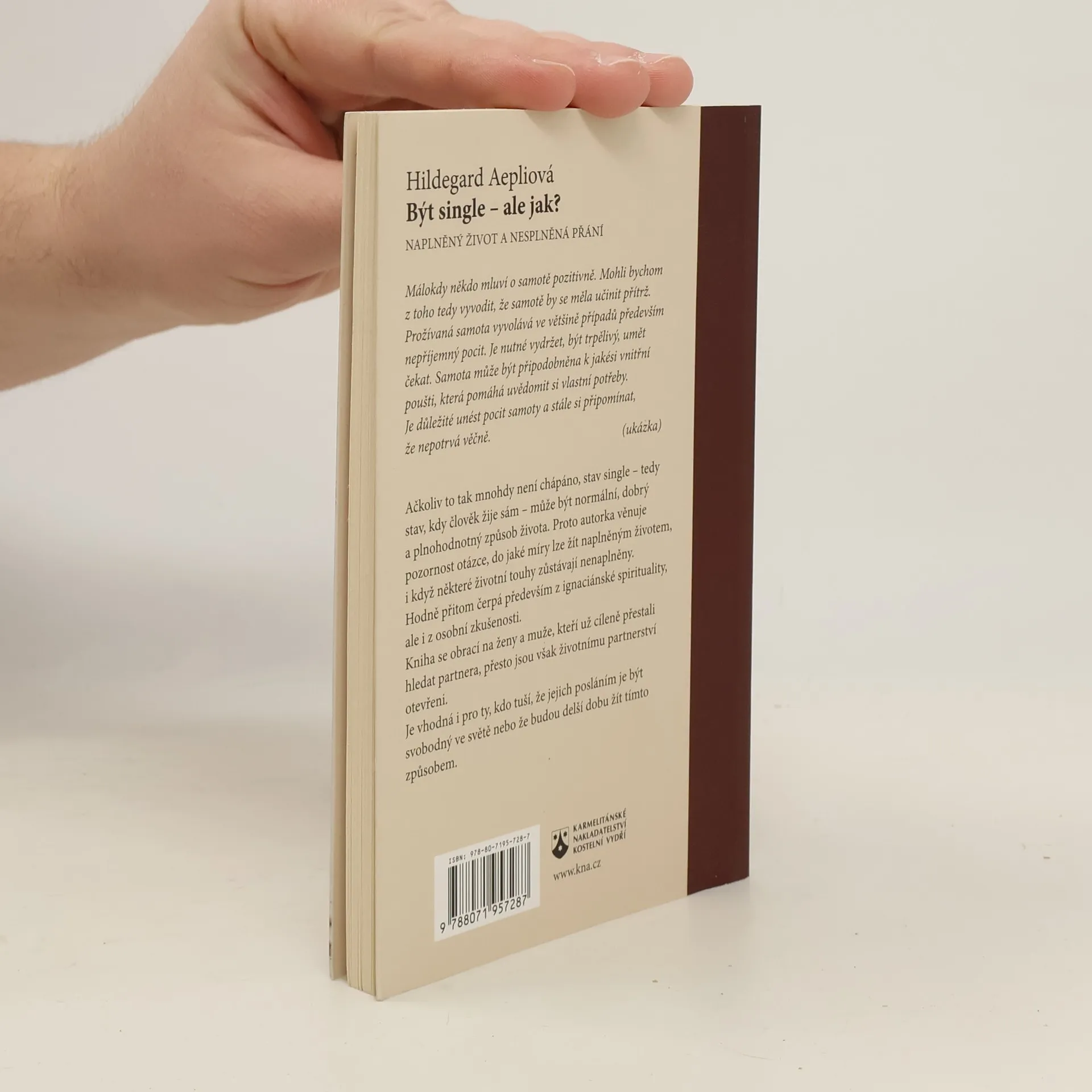 Ačkoliv to tak stále není chápáno, je stav single – tedy stav, kdy člověk žije sám – normální, dobrý a plnohodnotný způsob života. Na základě tohoto předpokladu věnuje Hildegard Aepliová pozornost otázce, do jaké míry existuje naplněný život s nenaplněnými přáními a touhami. Jednotlivé úvahy přitom vždy spojuje se svými osobními zkušenostmi. Kniha nabízí k dané tematice řadu podnětů a cvičení vycházejících z ignaciánské perspektivy.