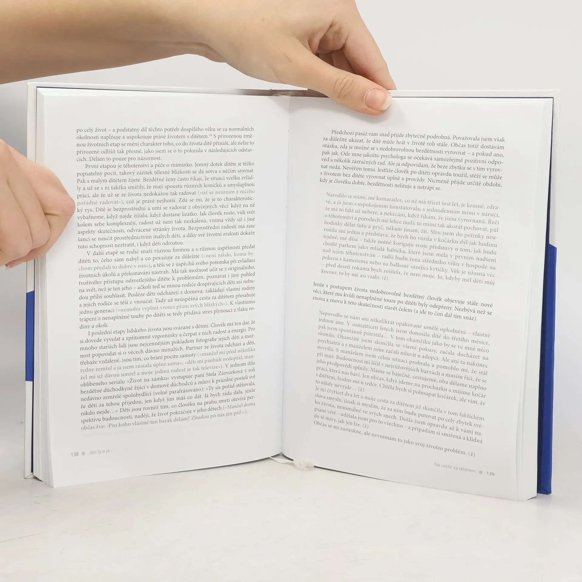 Kniha poskytuje vyčerpávající a hlavně velmi osobní pohled na mentální, emocionální a somatické problémy spojené s nenaplňujícím se rodičovstvím. Cesta za dítětem je popsána téměř chronologicky, od zjištění potíží až po těhotenství či bezdětnost, navíc velmi věrohodně z obou perspektiv, ženské i mužské. Odborný pohled je doplněn množstvím přesvědčivých výpovědí těch, kdo cestu za dítětem prošli sami. Tato kniha bude užitečná jak párům trpícím infertilitou, tak odborníkům, kteří jim problém pomáhají řešit.