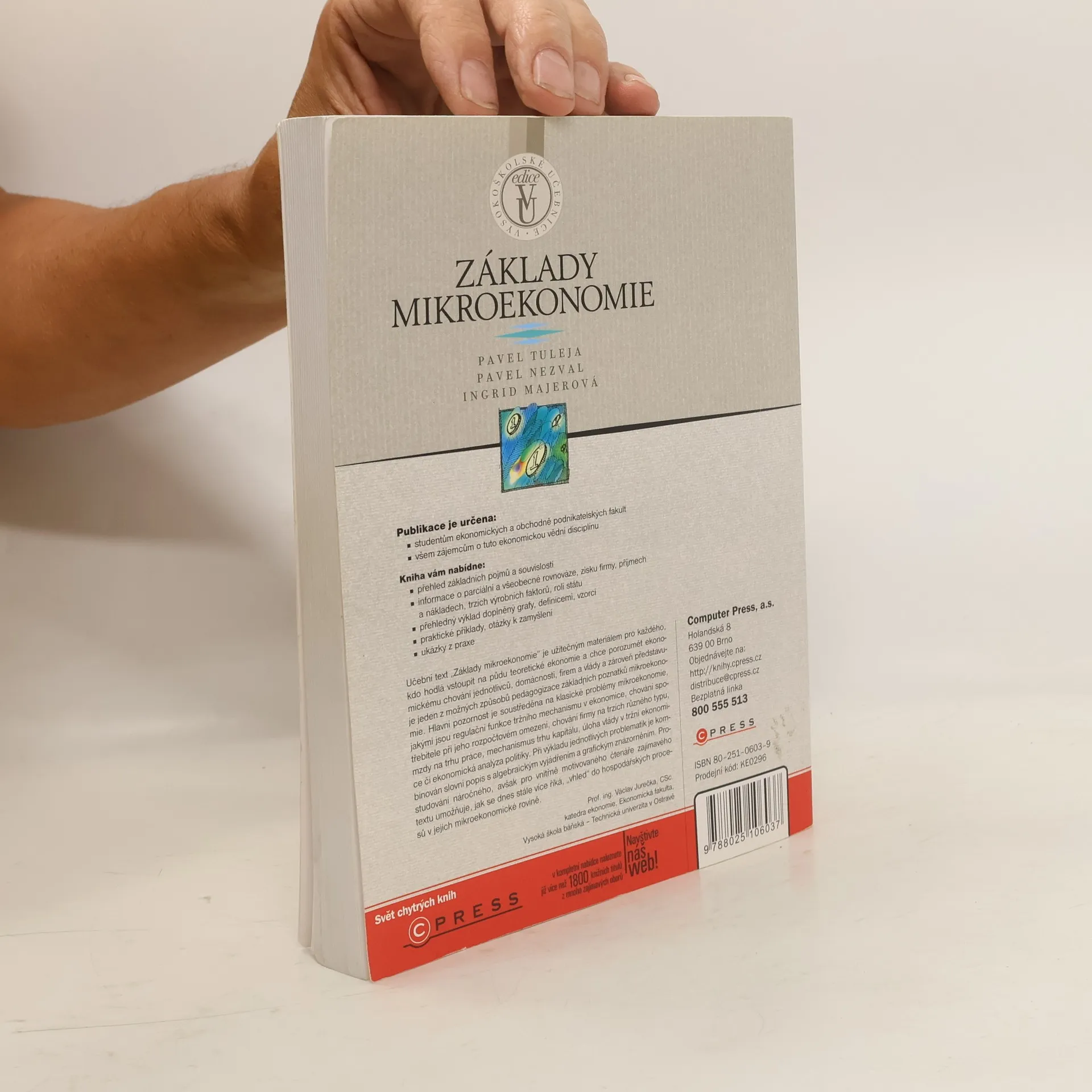 Základy mikroekonomie jsou užitečnou knihou pro každého, kdo chce porozumět hospodářským procesům v jejich mikroekonomické rovině. Je určena nejen studentům ekonomických a podnikatelských fakult, ale také všem ostatním zájemcům o tuto oblast ekonomie. Hlavní pozornost je soustředěna na klasické problémy mikroekonomie, jakými jsou tržní mechanismy, chování spotřebitele, chování firmy na trzích různého typu a další.