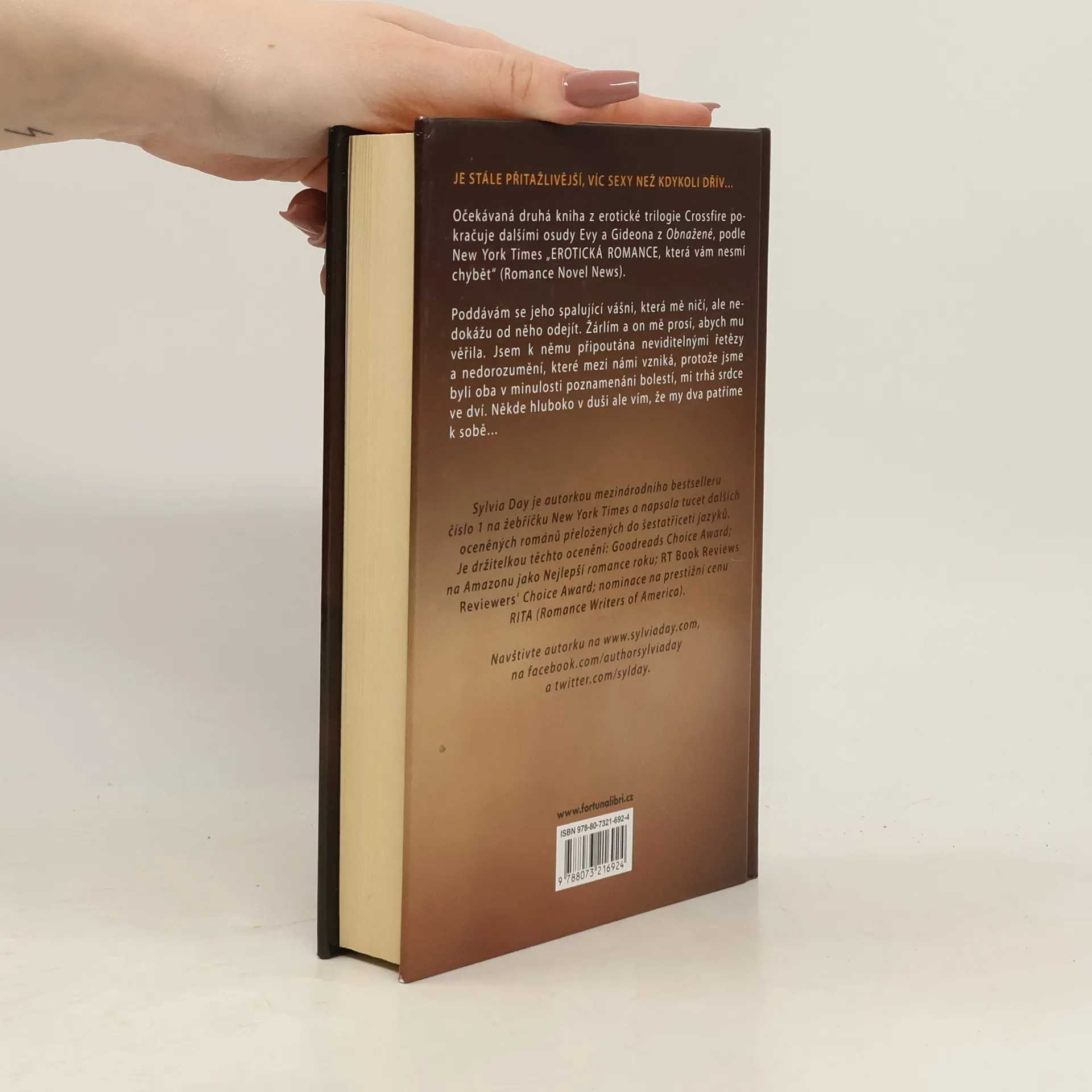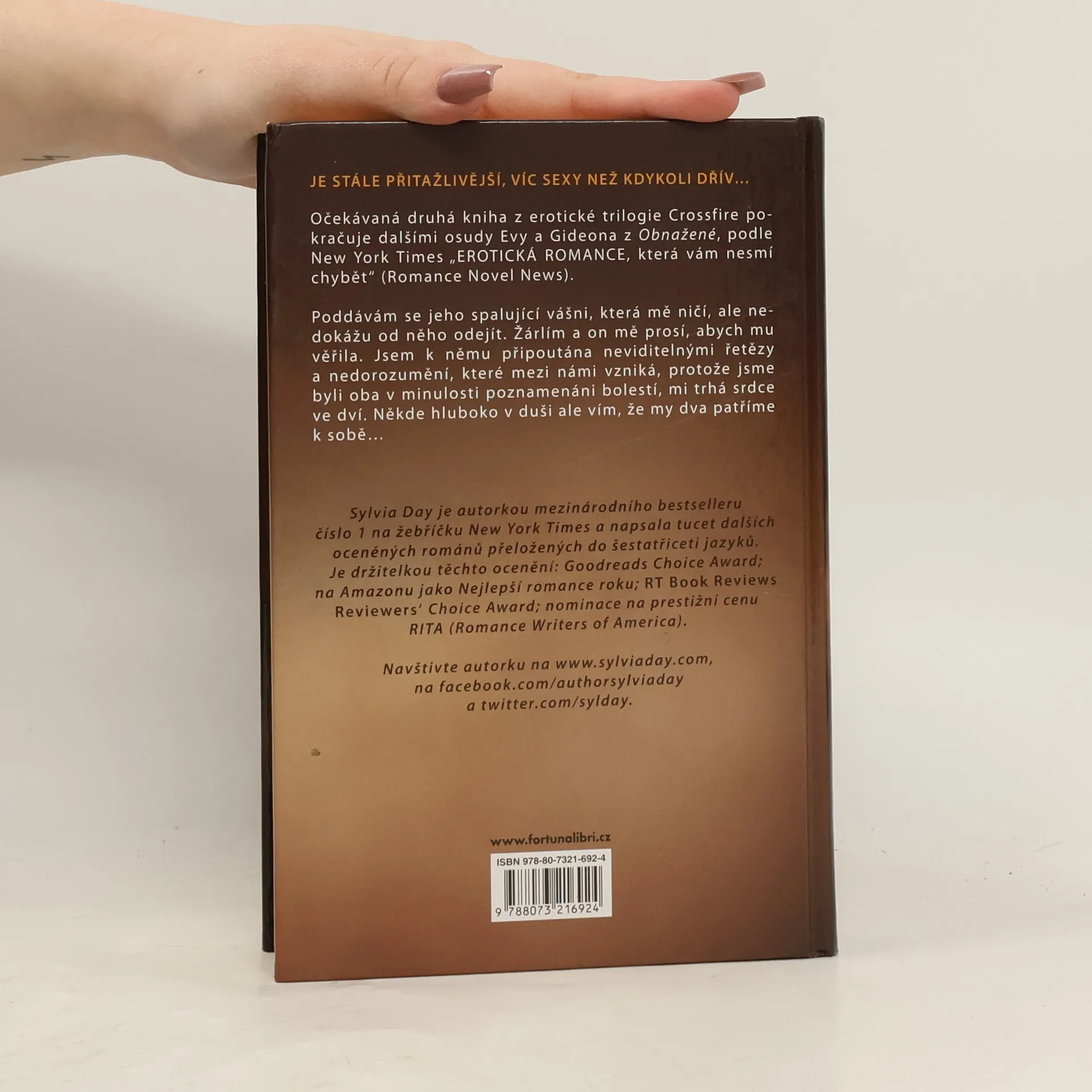 Je stále přitažlivější, víc sexy než kdykoli dřív… Druhá kniha z erotické trilogie Crossfire pokračuje dalšími osudy Evy a Gideona z Obnažené, podle New York Times „EROTICKÁ ROMANCE, která vám nesmí chybět“ (Romance Novel News). Poddávám se jeho spalující vášni, která mě ničí, ale nedokážu od něho odejít. Žárlím a on mě prosí, abych mu věřila. Jsem k němu připoutána neviditelnými řetězy a nedorozumění, které mezi námi vzniká, protože jsme byli oba v minulosti poznamenáni bolestí, mě trhá srdce ve dví. Někde hluboko v duši ale vím, že my dva patříme k sobě…
