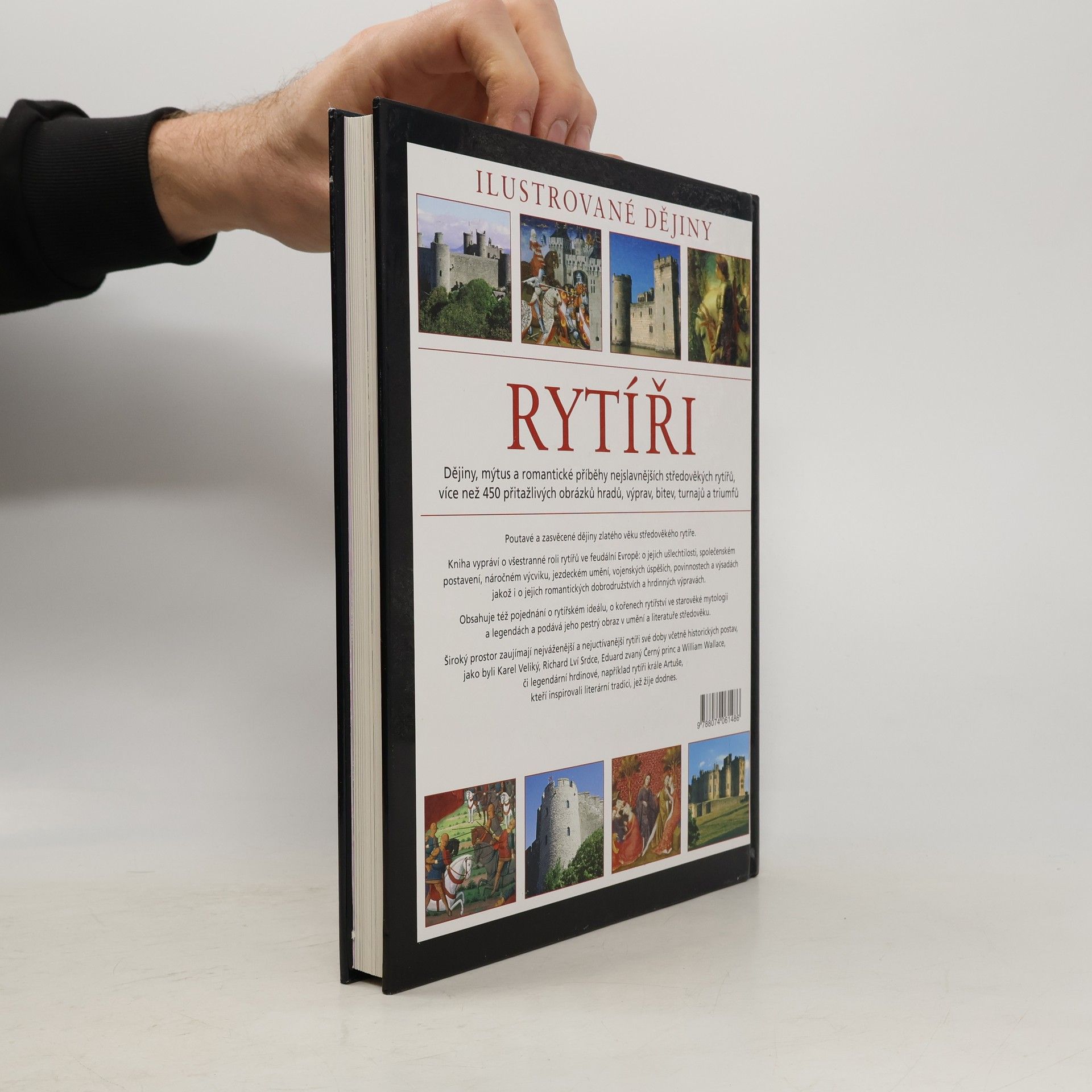 Podtitul knihy: dějiny, mýtus a romantické příběhy nejslavnějších středověkých rytířů, více než 450 přitažlivých obrázků hradů, výprav, bitev a triumfů.